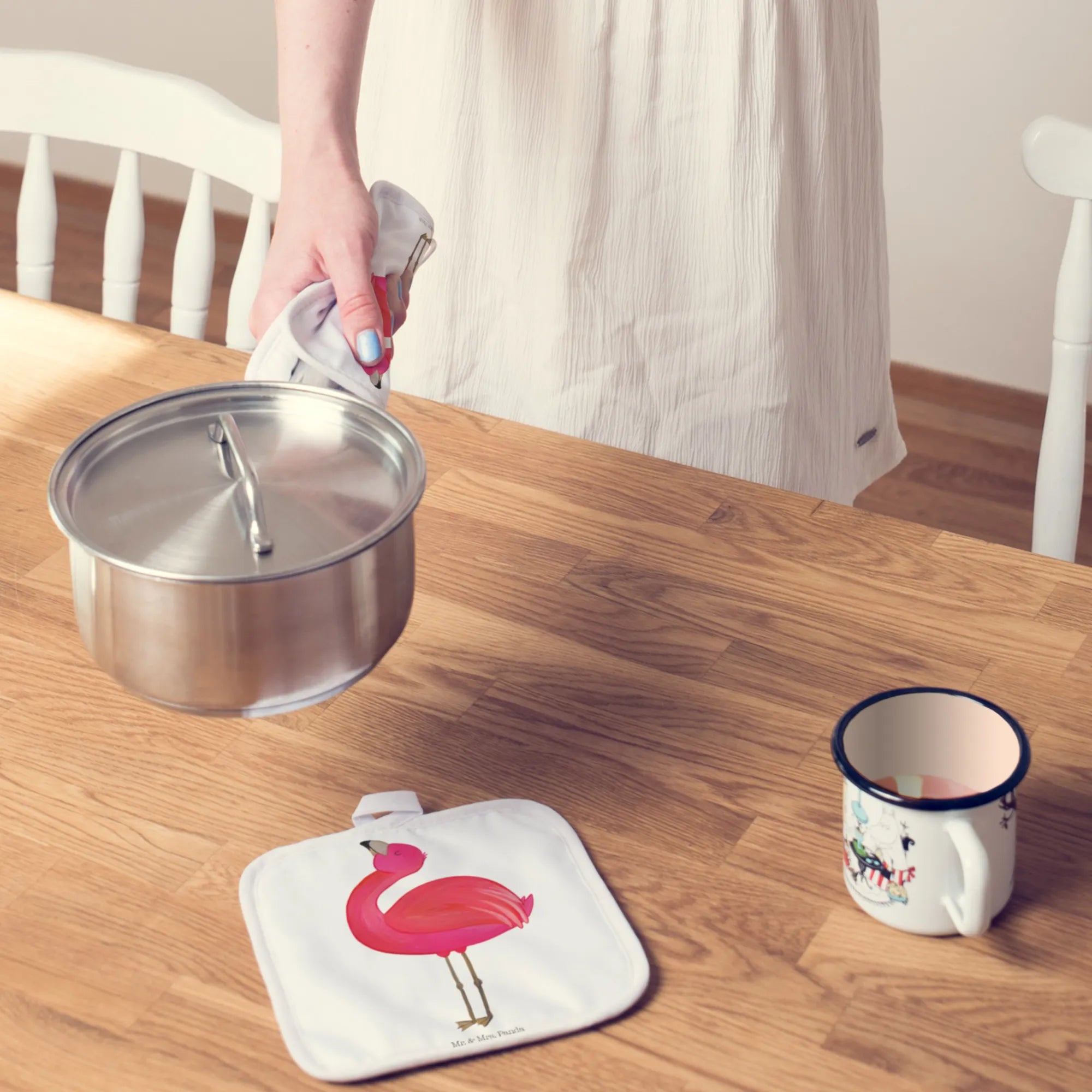Verschenke Sommer, Stil und ein Lächeln – mit dem Flamingo stolz Topflappenset von Mr. & Mrs. Panda! 🎁🦩