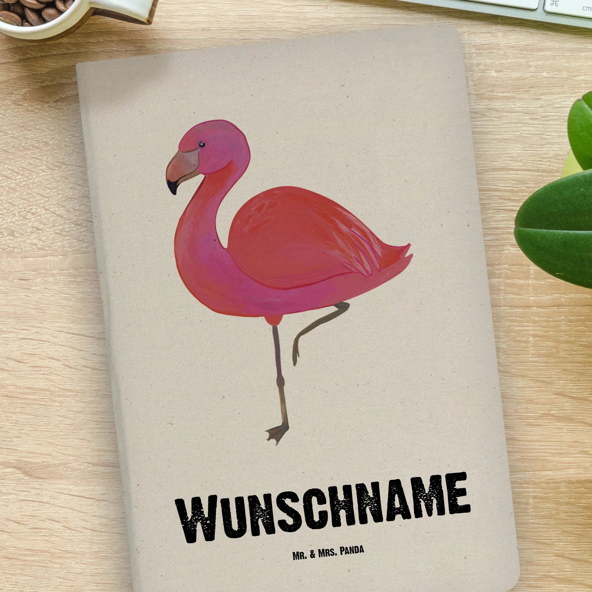 Entdecke das perfekte Geschenk für alle Flamingo-Liebhaber mit unserem personalisierten Notizbuch Flamingo classic aus der exklusiven Flamingo-Kollektion von Mr. & Mrs. Panda! Dieses hochwertige DIN A4 Notizbuch ist nicht nur praktisch, sondern verleiht auch jedem Gedanken und jeder Skizze eine ganz besondere Note.