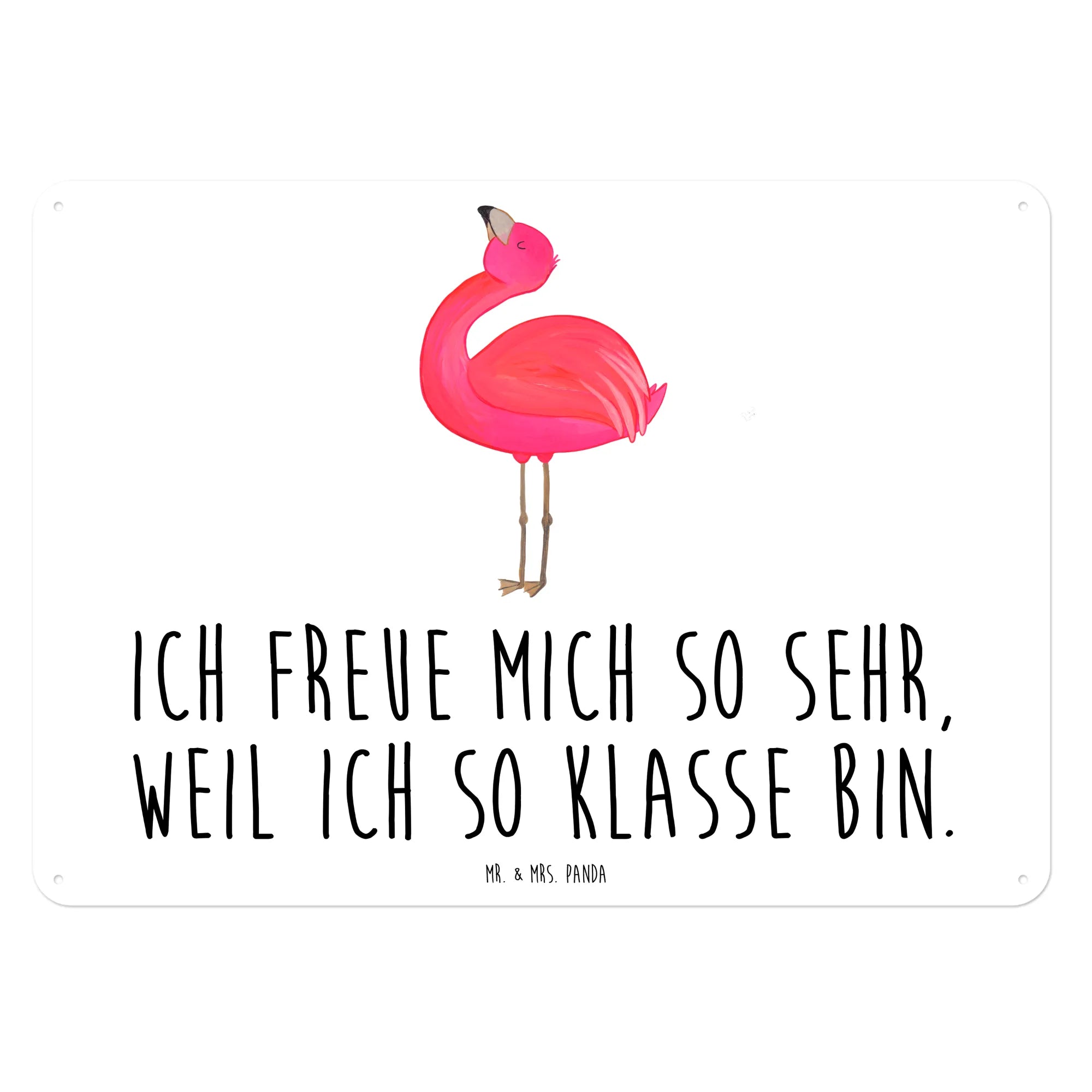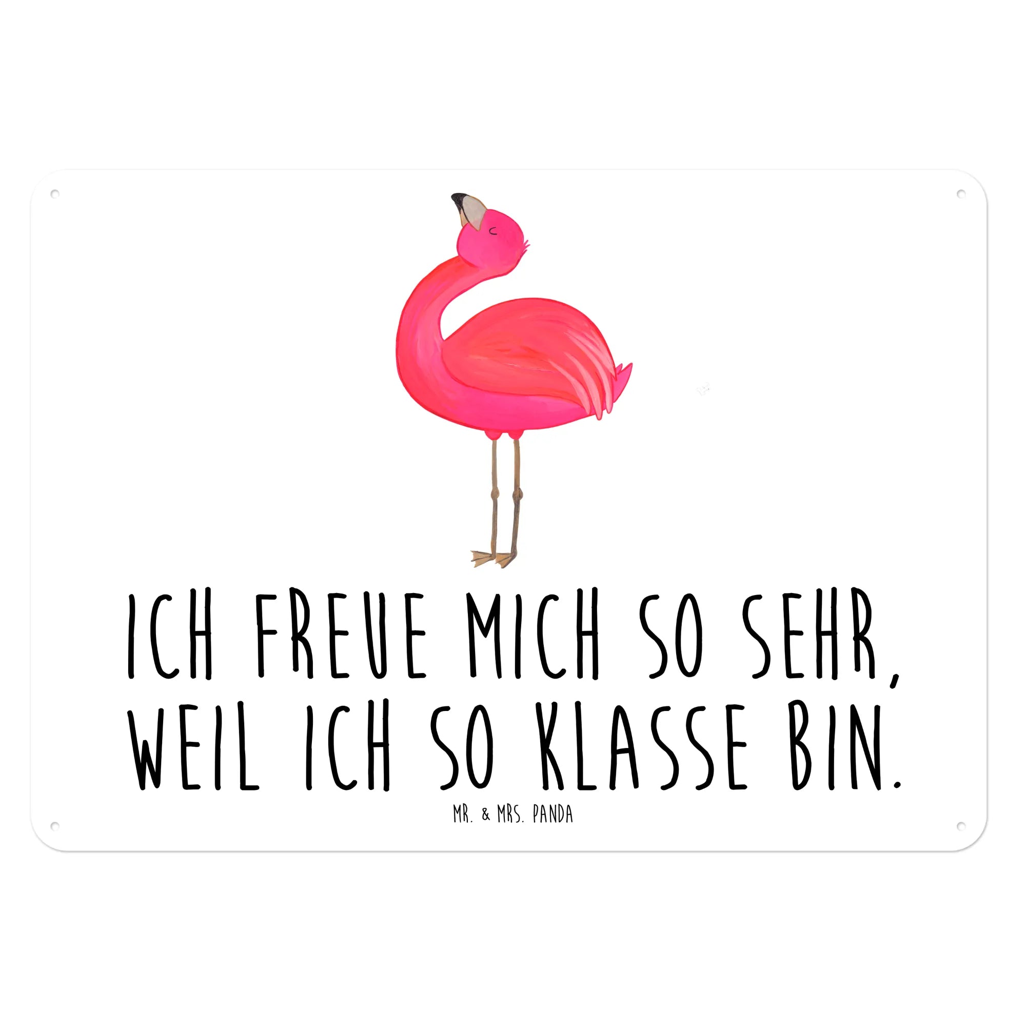 Das edle Blechschild "Flamingo stolz" von Mr. & Mrs. Panda ist der perfekte Begleiter für all jene, die das Leben in vollen Zügen genießen und sich selbst lieben. Mit seinem liebevoll handgezeichneten Motiv eines stolzen Flamingos strahlt es Lebensfreude und Eleganz aus.