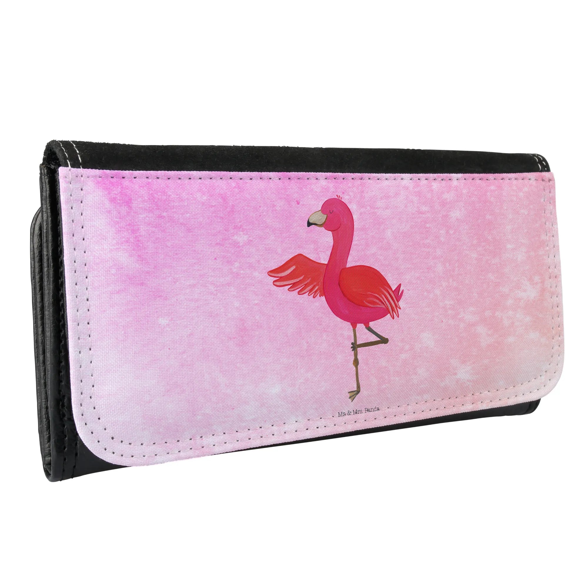 Das Damen Portemonnaie Flamingo Yoga von Mr. & Mrs. Panda ist der perfekte Begleiter für all die heutzutage meist hektischen Momente. Mit einem lebendigen Flamingo, der in einer eindrucksvollen Yoga-Position auf einem Bein steht, bringt dieses Portemonnaie sofort gute Laune und Entspannung in deinen Alltag.