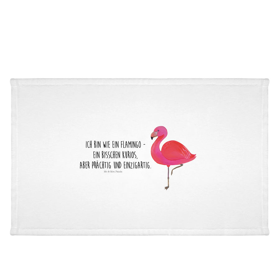 Mit dem liebevoll handgezeichneten Motiv eines Flamingos, der sich stolz auf einem Bein balanciert, ist dieses Handtuch sowohl einzigartig als auch kurios – genau wie du! Der Spruch \'Ich bin wie ein Flamingo – ein bisschen kurios, aber prächtig und einzigartig.\' setzt ein fröhliches Statement und macht das Handtuch zu einem tollen Geschenk für Freundinnen, Geschwister, Töchter oder Söhne.