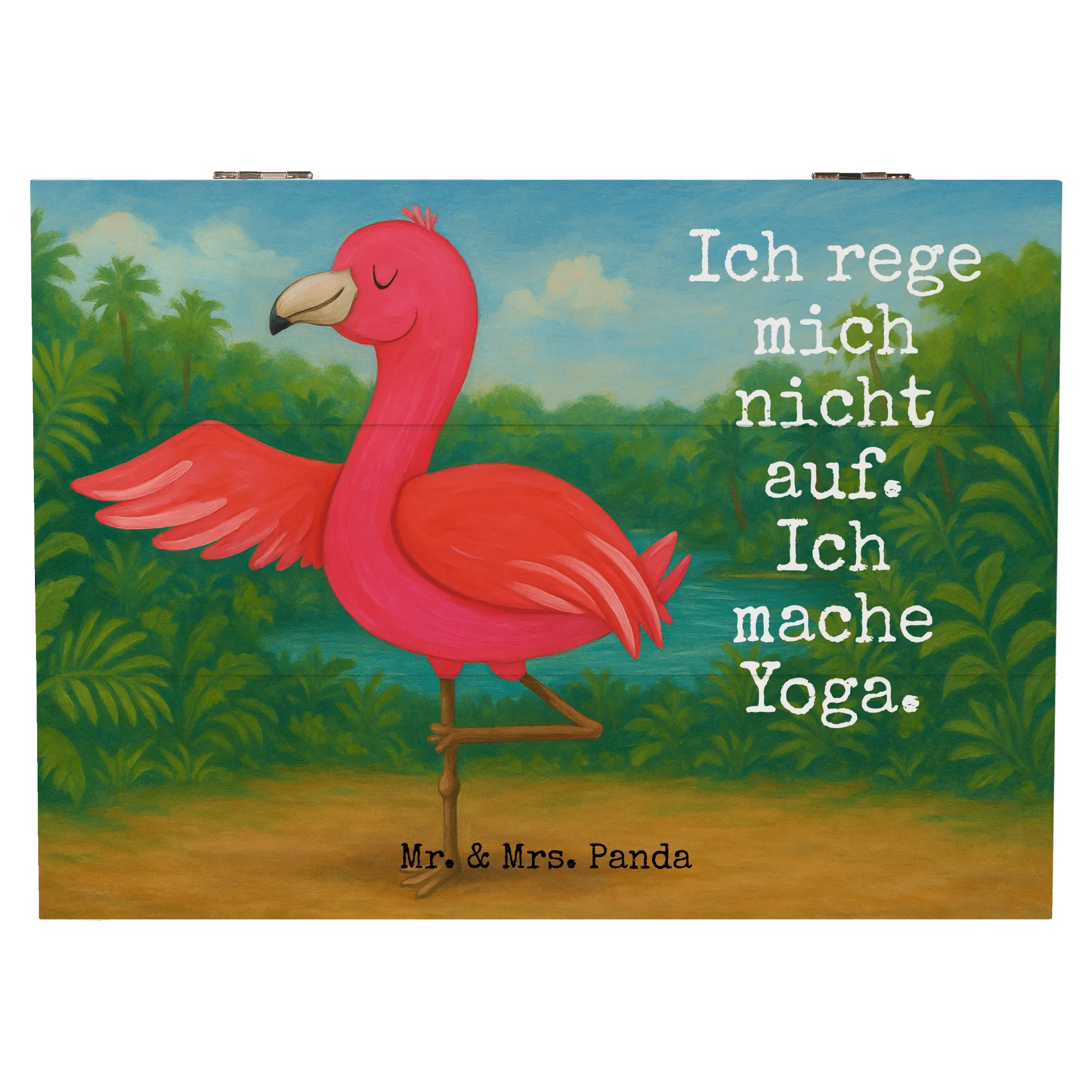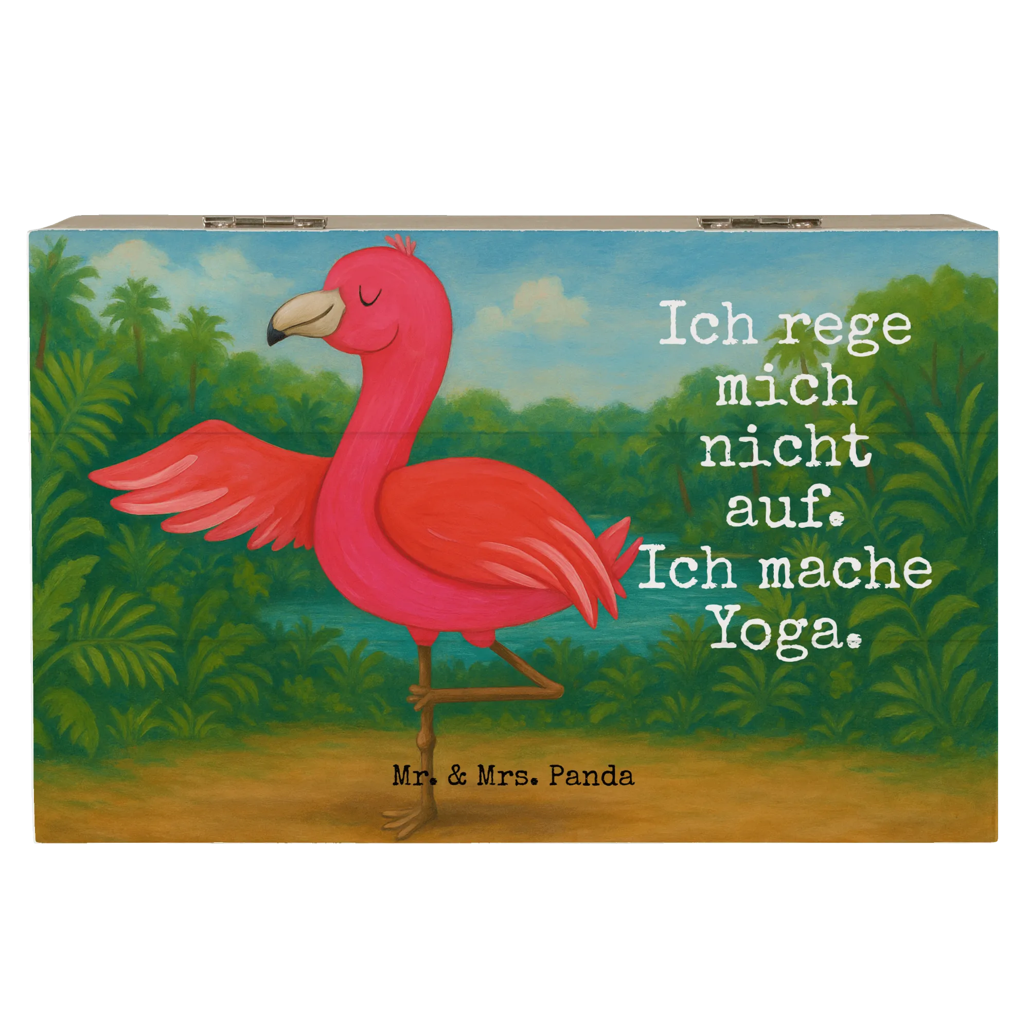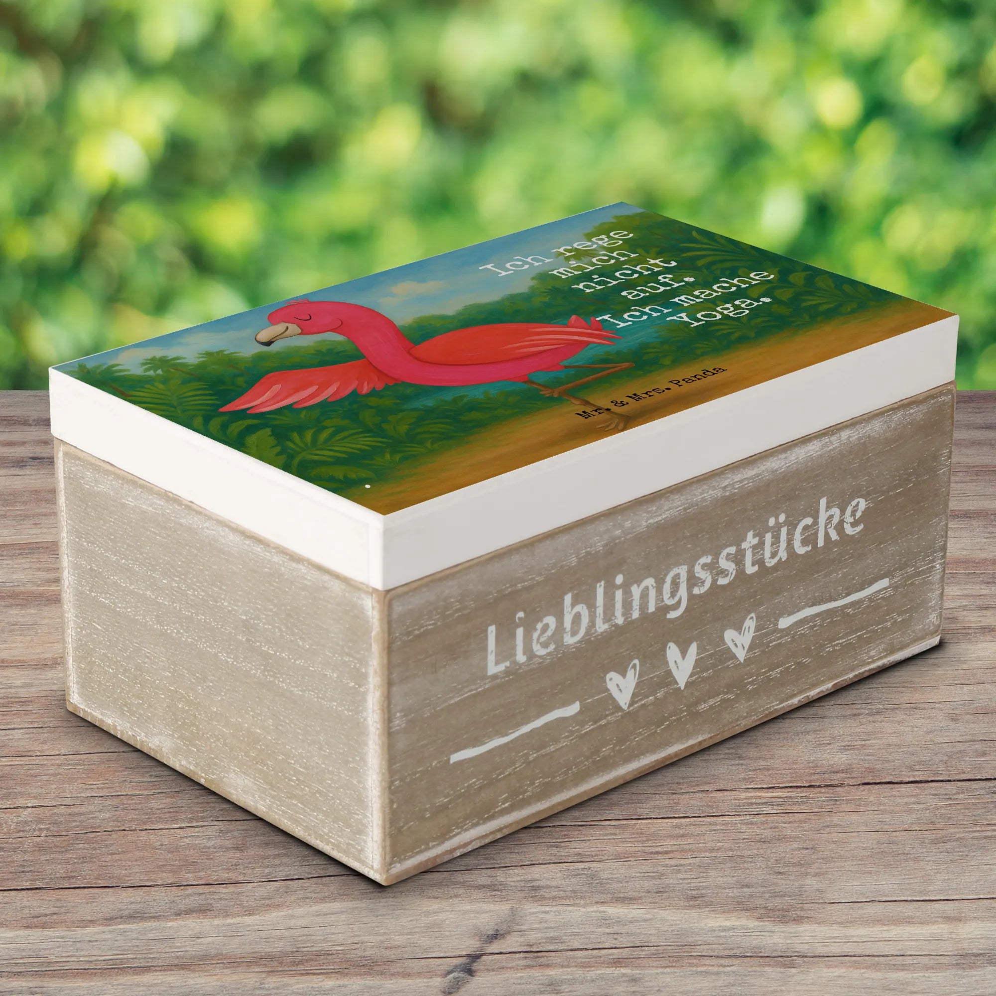 Holzkiste Flamingo Yoga Design - 22 x 15 cm - mit Spruch