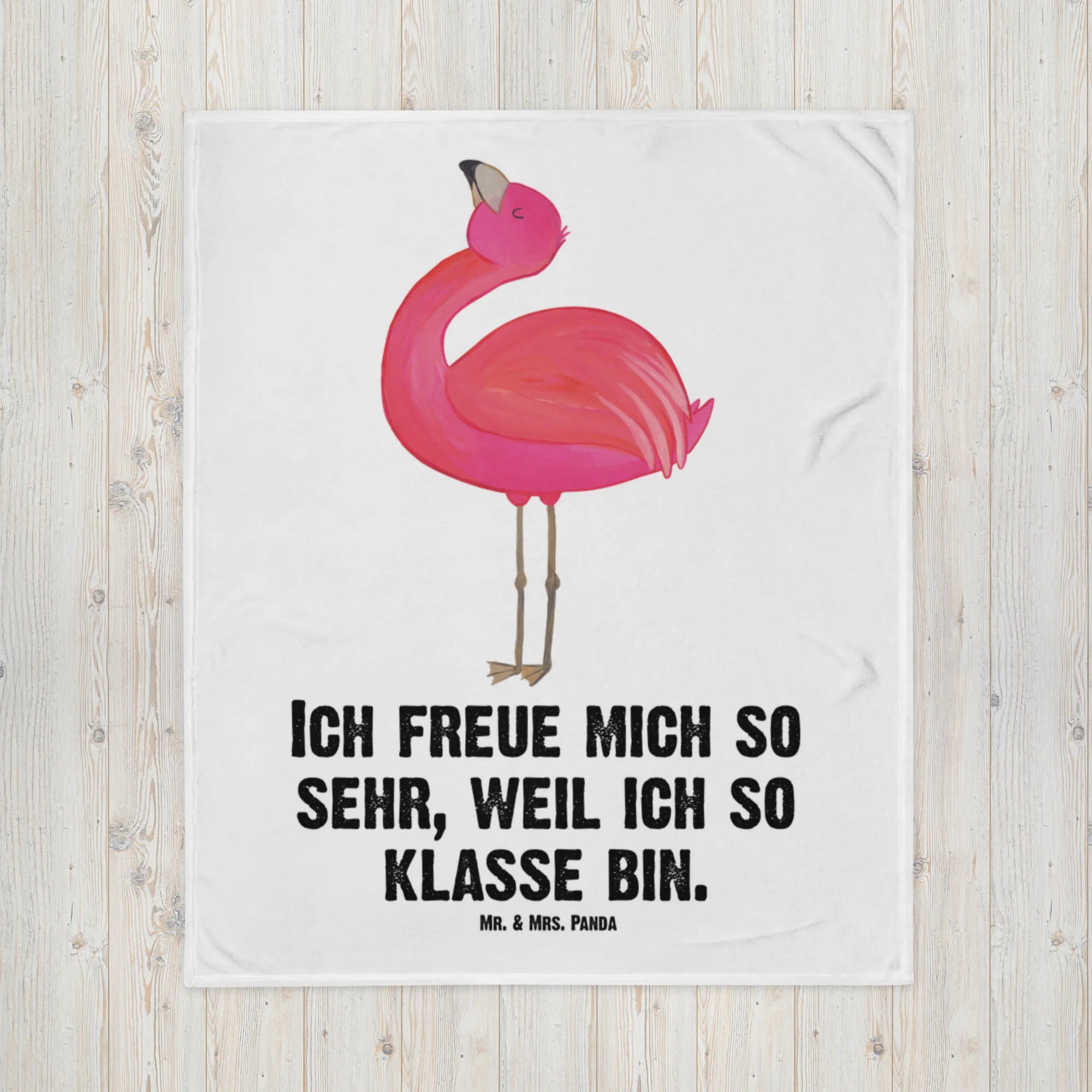 Kuscheldecke Flamingo stolz - mit Spruch - Weiß