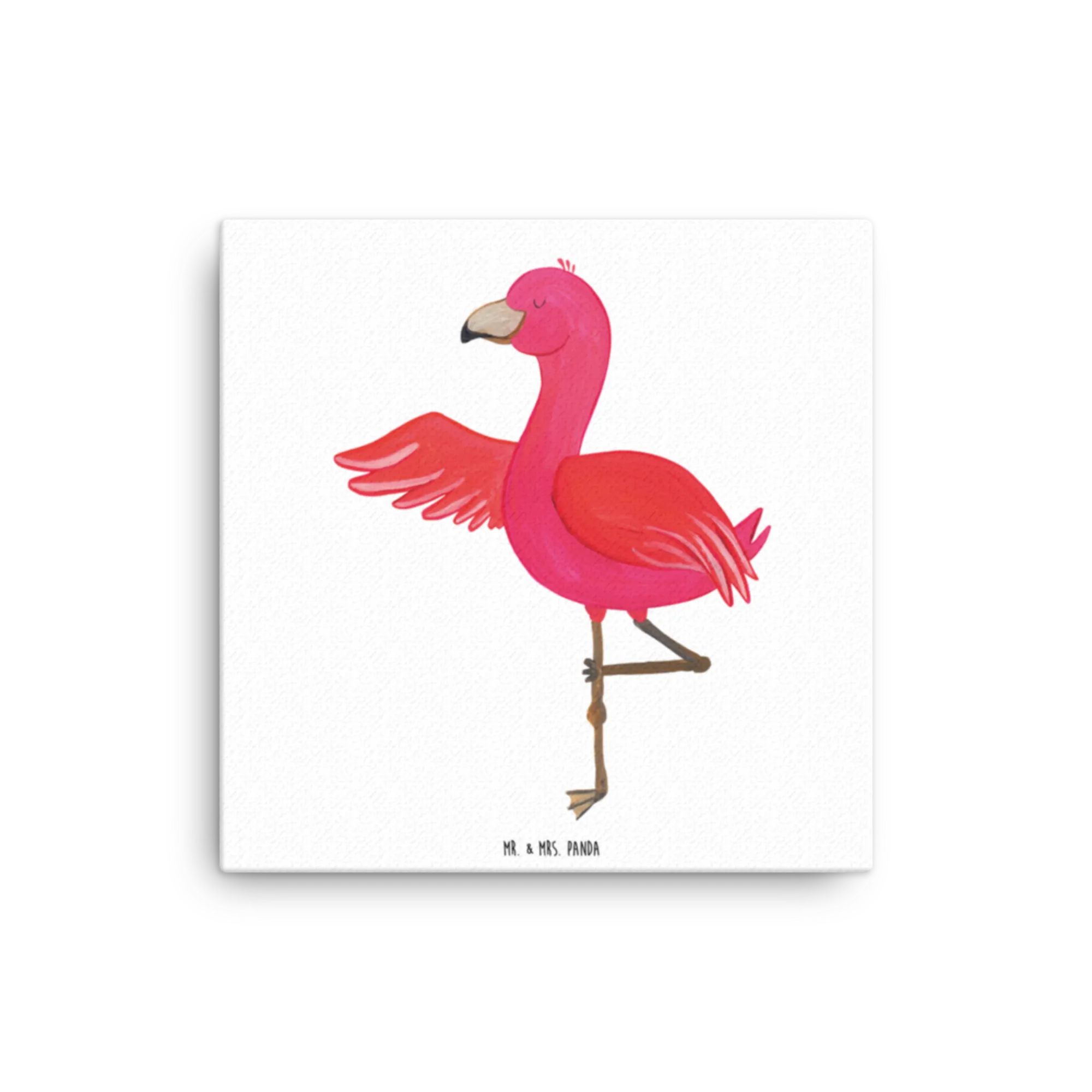 Leinwand Bild Flamingo Yoga - 40 x 40 cm - mit Spruch - Weiß