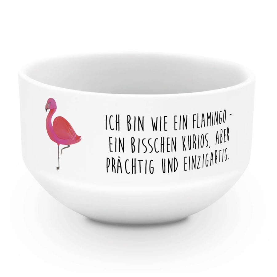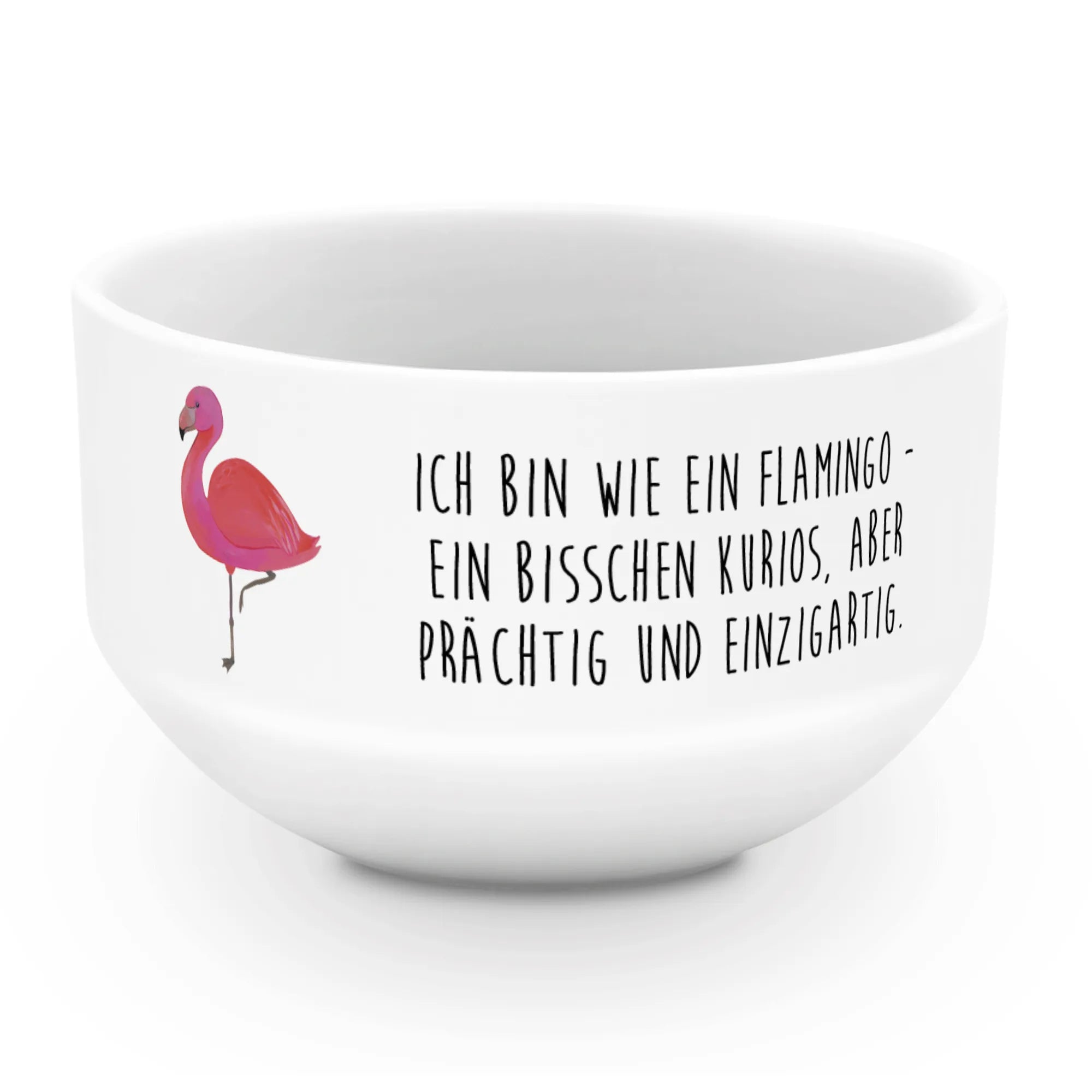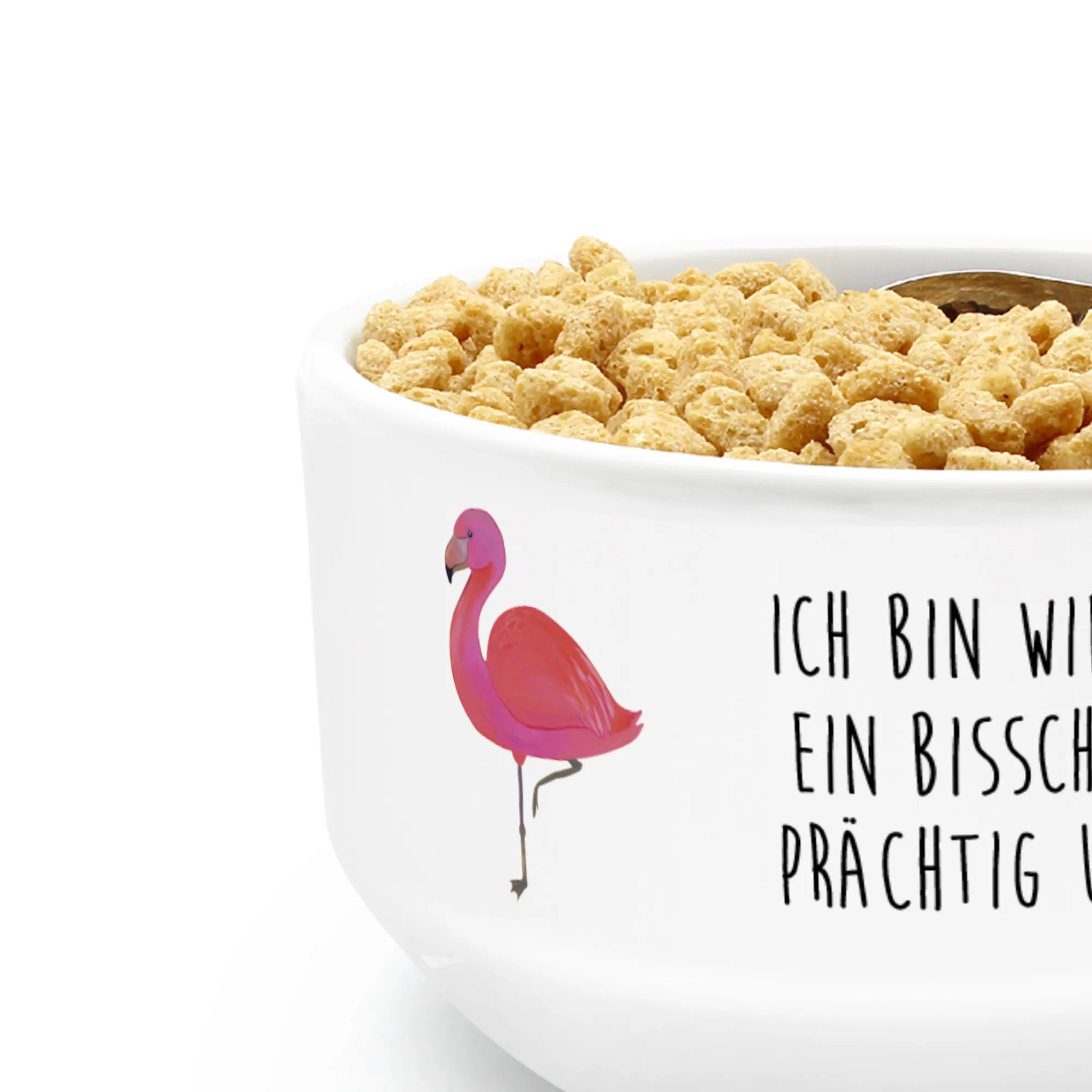 Mr. & Mrs. Panda Müslischale „Flamingo classic“ – ein kleiner Sommergruß auf deinem Tisch 🦩. Die hübsch illustrierte Müslischüssel mit dem frechen Spruch „Ich bin wie ein Flamingo - ein bisschen kurios, aber prächtig und einzigartig.“ schenkt dir jeden Morgen ein Lächeln und versprüht gute Laune.