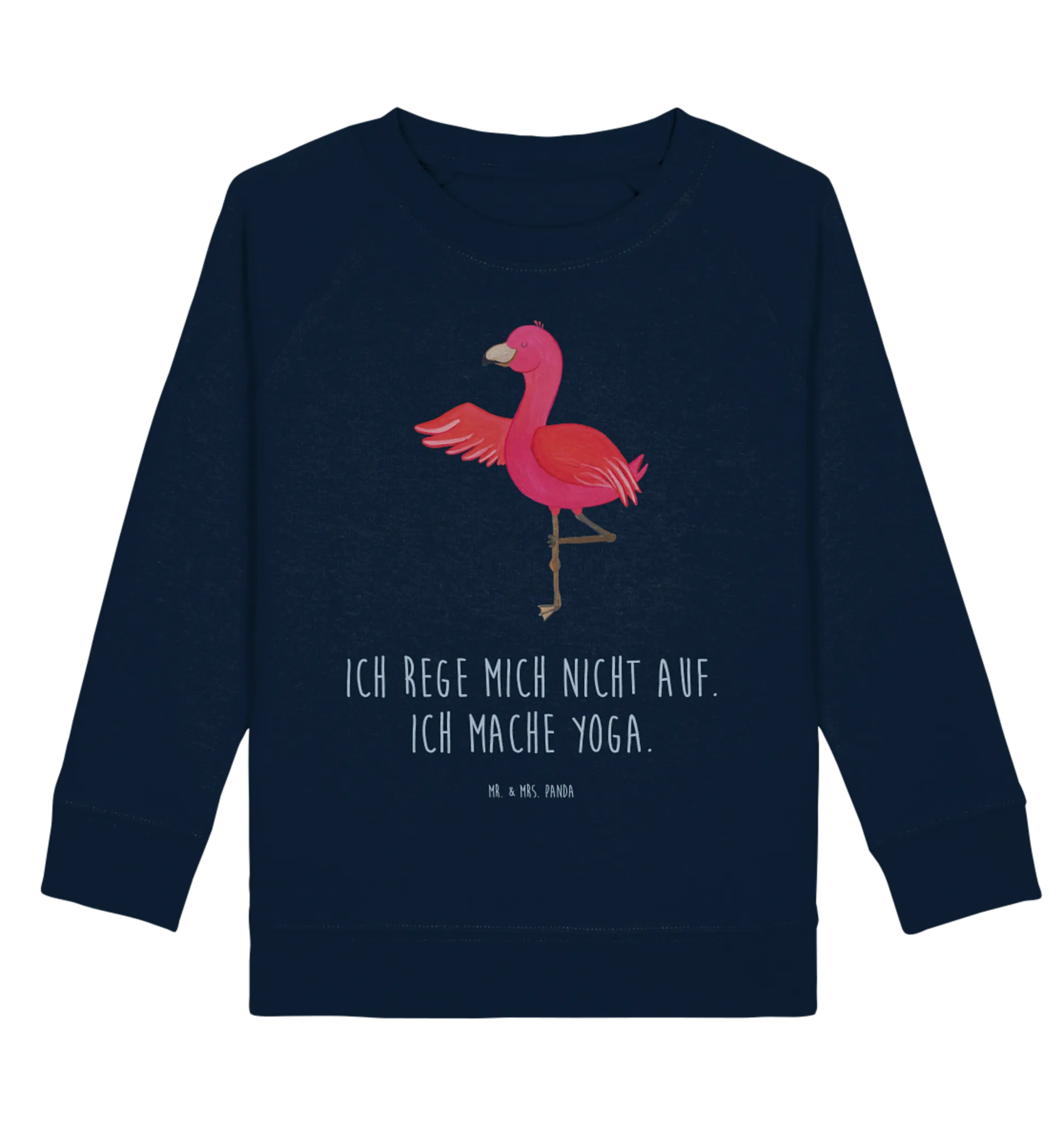Lass das Kind in deinem Leben die positiven Vibes des Flamingos und die entspannenden Momente des Yoga spüren. Dieses Kunstwerk wurde mit Liebe von Mrs. Panda handgezeichnet, was jeden Pullover zu einem Unikat macht.