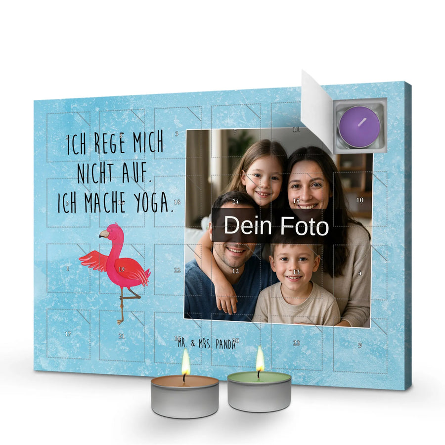 Personalisierter Duftkerzen Foto Adventskalender Flamingo Yoga - Eisblau