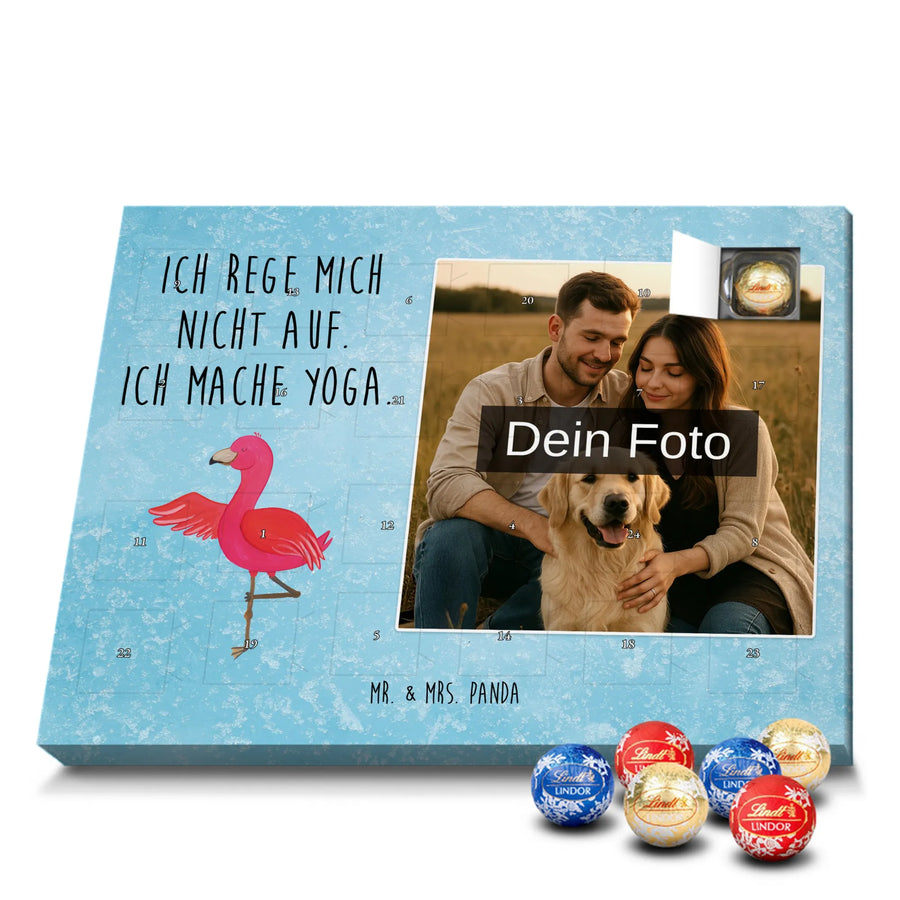 Personalisierter Schoko Foto Adventskalender Flamingo Yoga - Lindt LINDOR - Eisblau