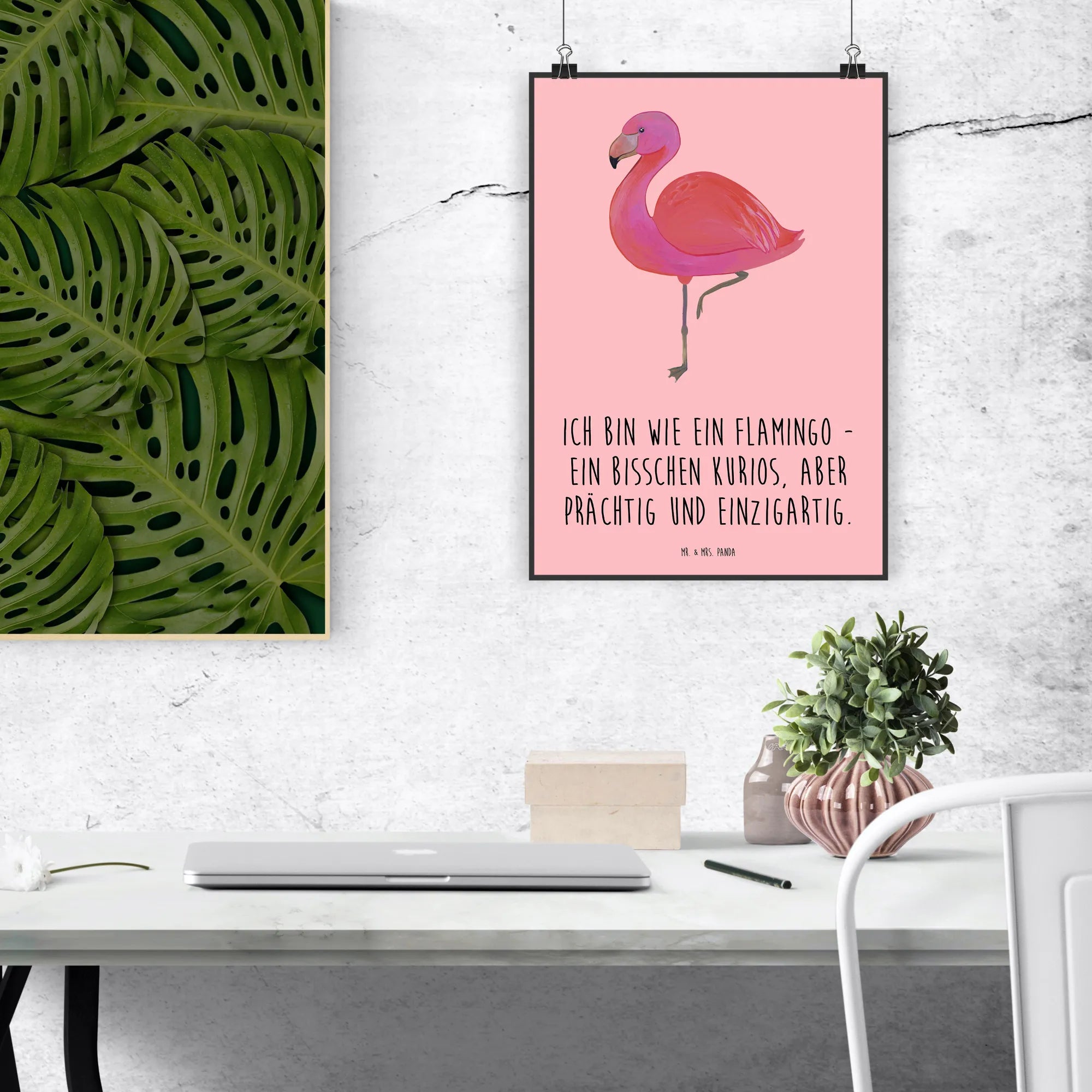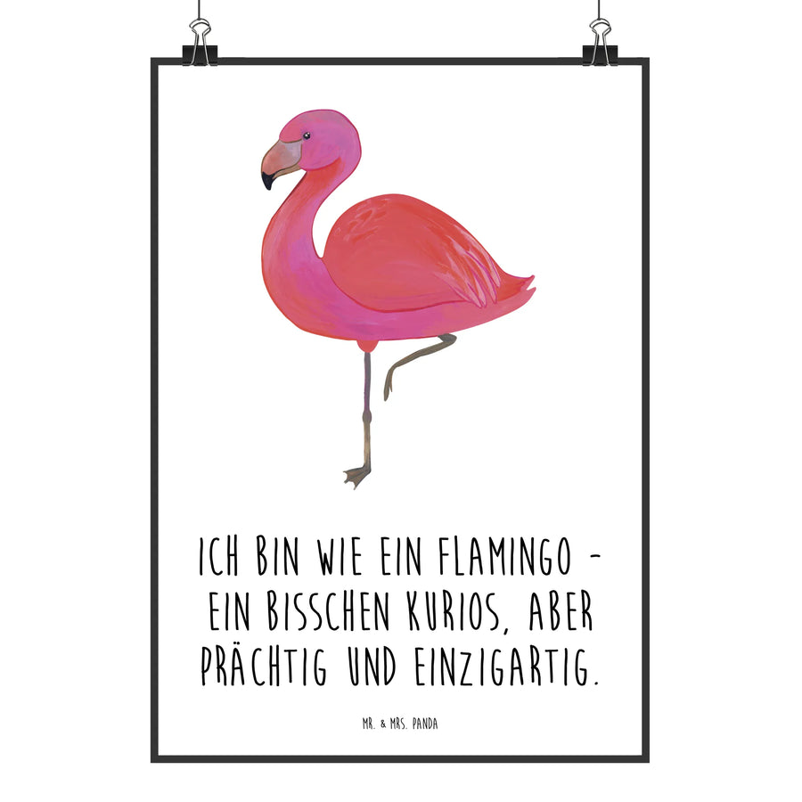 Entdecke das perfekte Geschenk für Flamingo-Liebhaber! Unser Poster "Flamingo classic" aus der exklusiven Flamingo-Kollektion von Mr. & Mrs. Panda bringt nicht nur Farbe in jeden Raum, sondern versprüht auch eine lebensfrohe Sommeratmosphäre. Mit seinem charmanten Spruch "Ich bin wie ein Flamingo - ein bisschen kurios, aber prächtig und einzigartig" ist es eine tolle Erinnerung daran, stolz auf sich selbst zu sein und das Leben in vollen Zügen zu genießen.