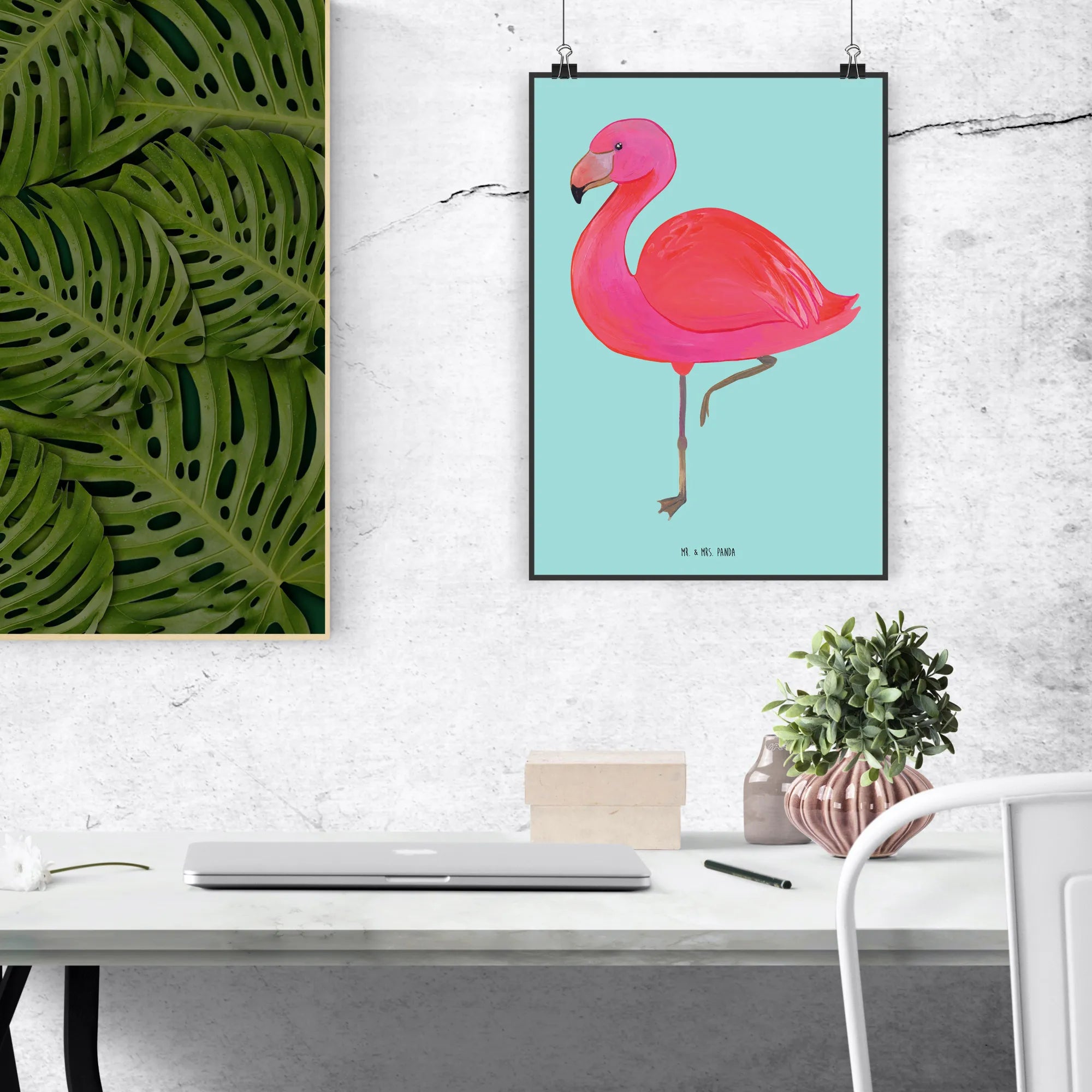 Das Flamingo Classic Poster von Mr. & Mrs. Panda ist das perfekte Geschenk für alle, die es lieben, einzigartige und fröhliche Wanddeko in ihrem Zuhause zu haben.