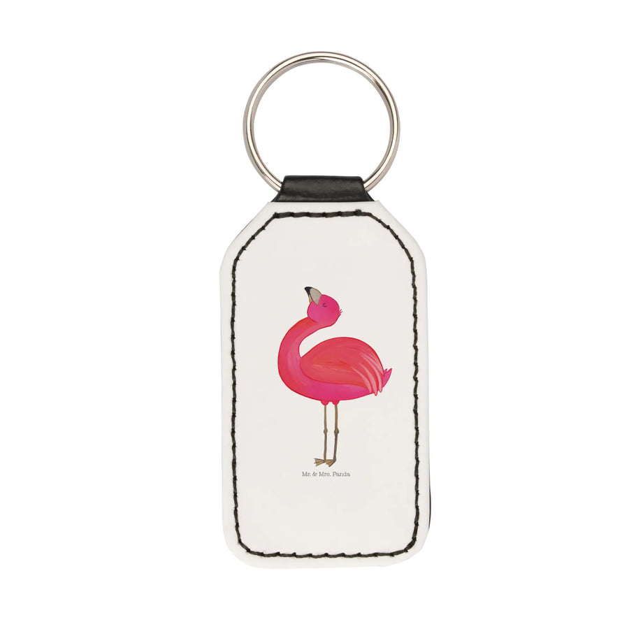 Rechteckig Schlüsselanhänger Flamingo stolz - ohne Spruch - Weiß