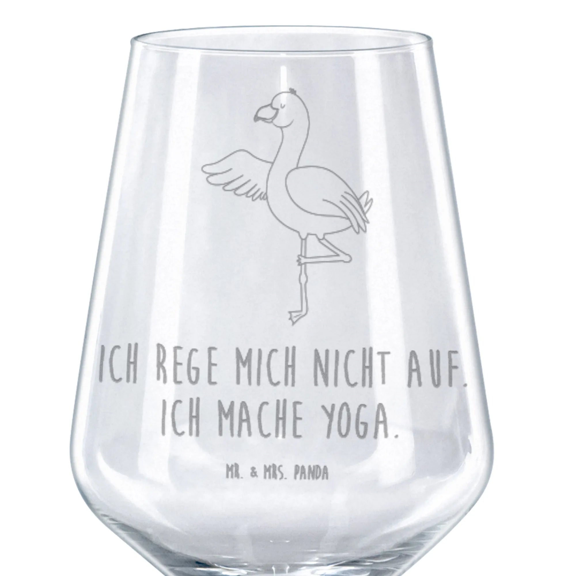 Entdecke das wunderschöne Rotweinglas von Mr. & Mrs. Panda, das mit einem bezaubernden Flamingo-Motiv und dem Slogan "Ich rege mich nicht auf. Ich mache Yoga." graviert ist. Dieses hochwertige Weinglas ist mehr als nur ein einfaches Glas – es ist das perfekte Geschenk für Weinliebhaber, die auch eine Freude an Yoga und Achtsamkeit haben.