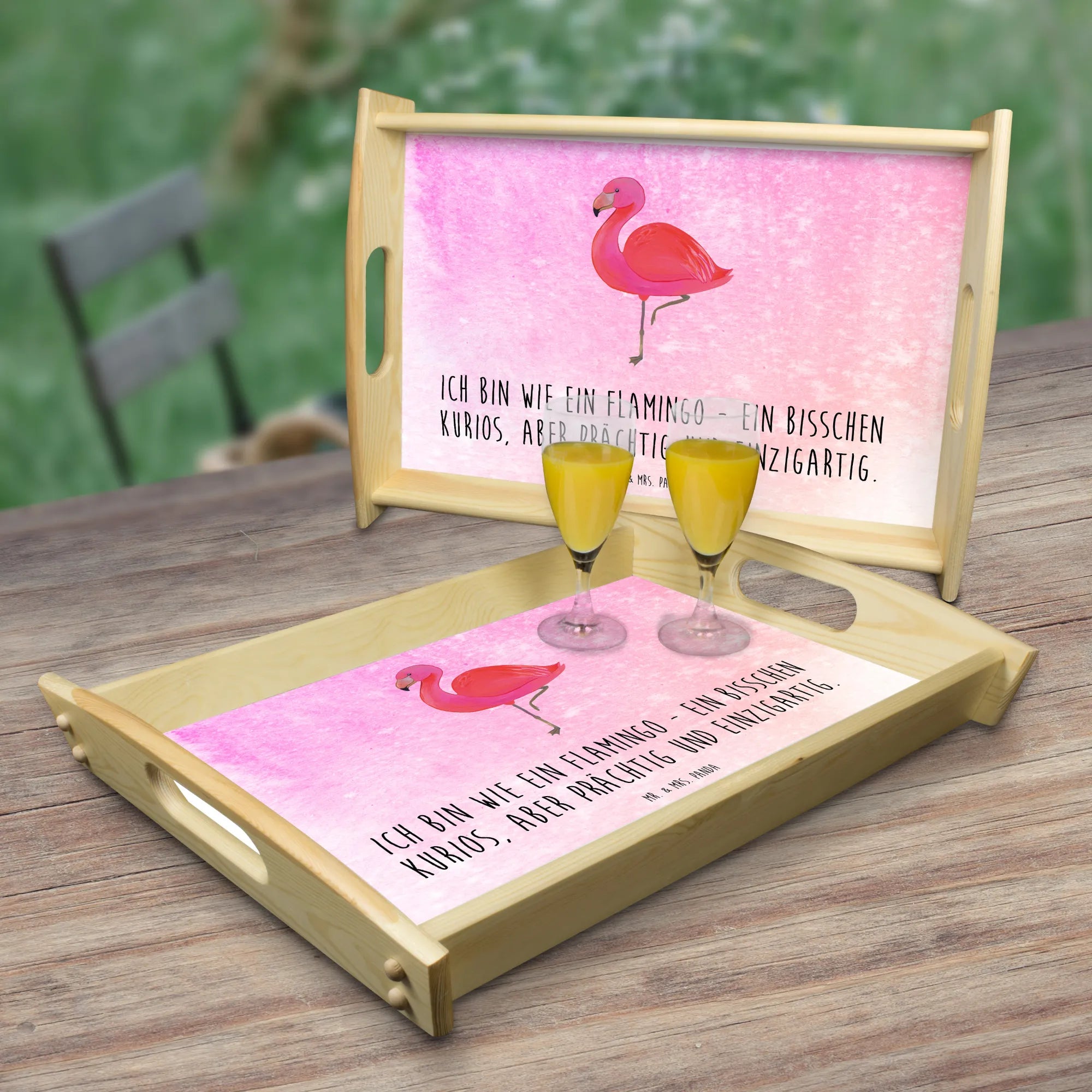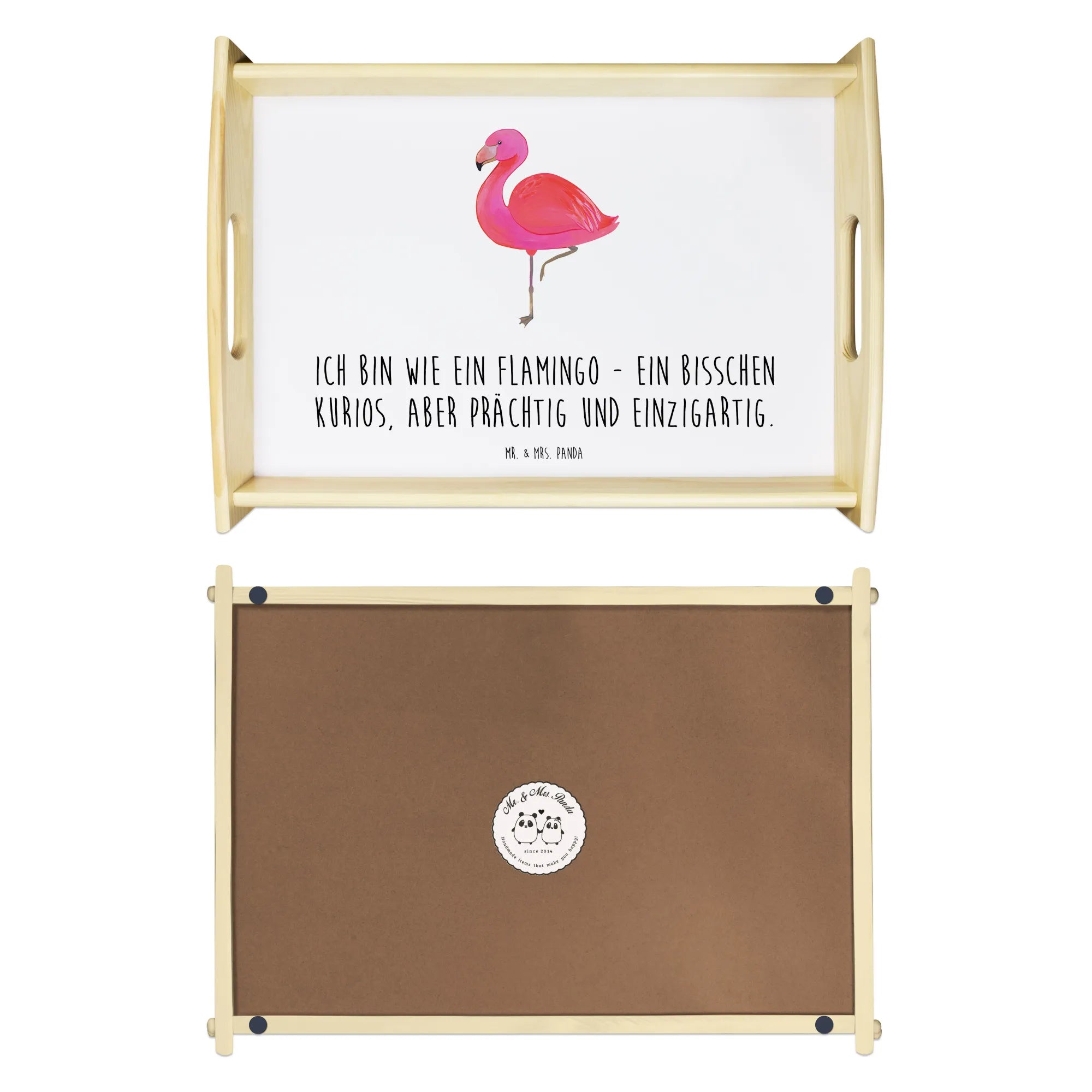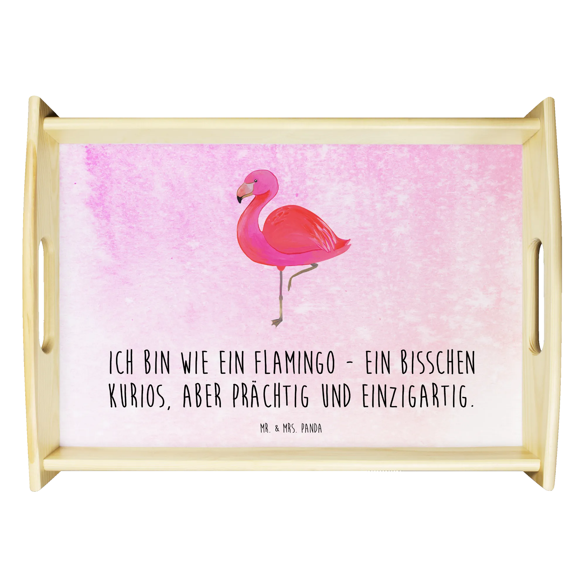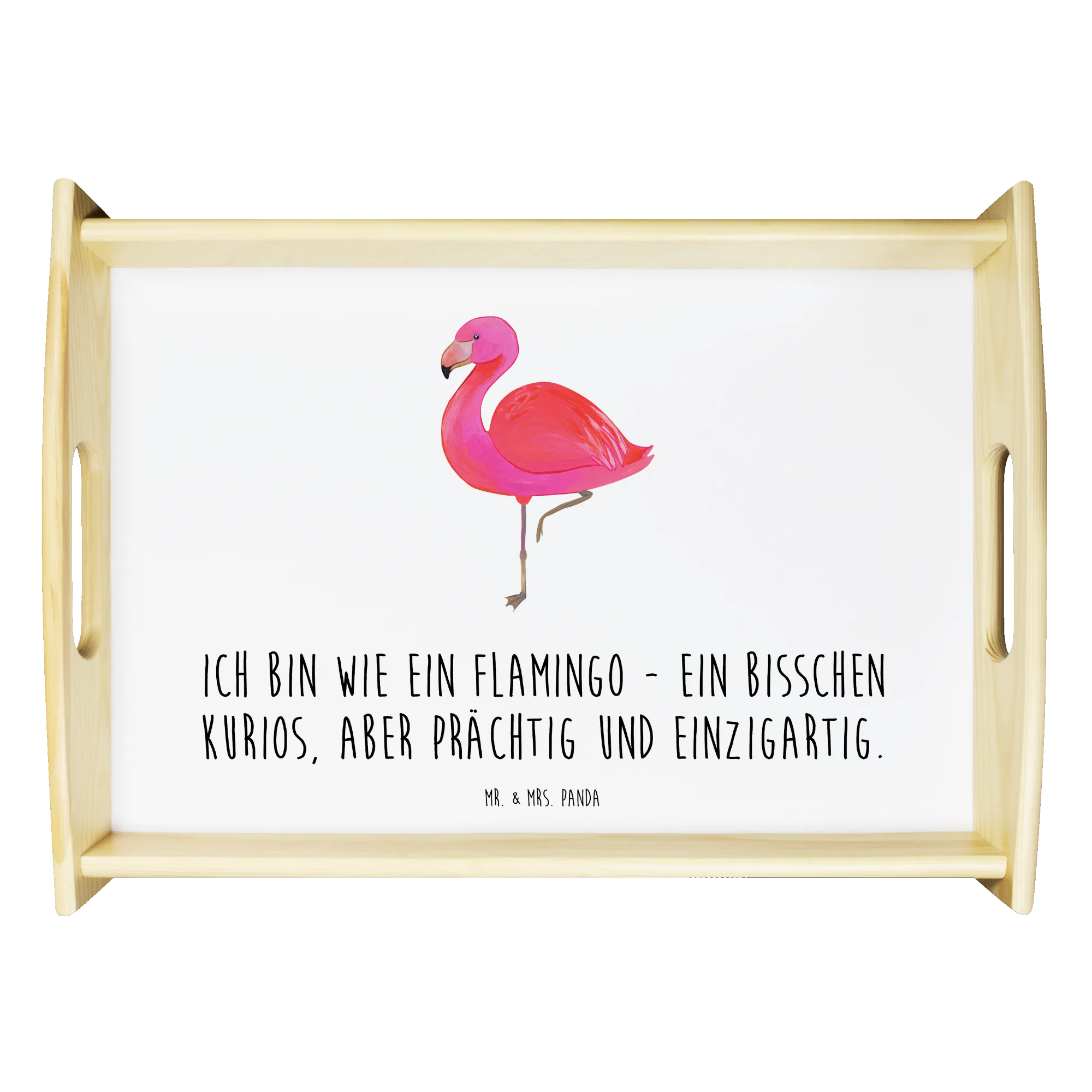 Entdecke das wunderschöne & einzigartige Serviertablett aus der Flamingo-Kollektion von Mr. & Mrs. Panda! Mit seinem charmanten Flamingo-Motiv und dem Spruch 'Ich bin wie ein Flamingo - ein bisschen kurios, aber prächtig und einzigartig.' ist dieses Tablett nicht nur ein Hingucker, sondern auch eine liebevolle Aufforderung zur Selbstliebe. Ob du das perfekte Geschenk für deine Freundin oder Freundinnen suchst oder einfach dein Heim mit etwas Einzigartigem aufpeppen möchtest, dieses Holztablett ist die ideale Wahl!