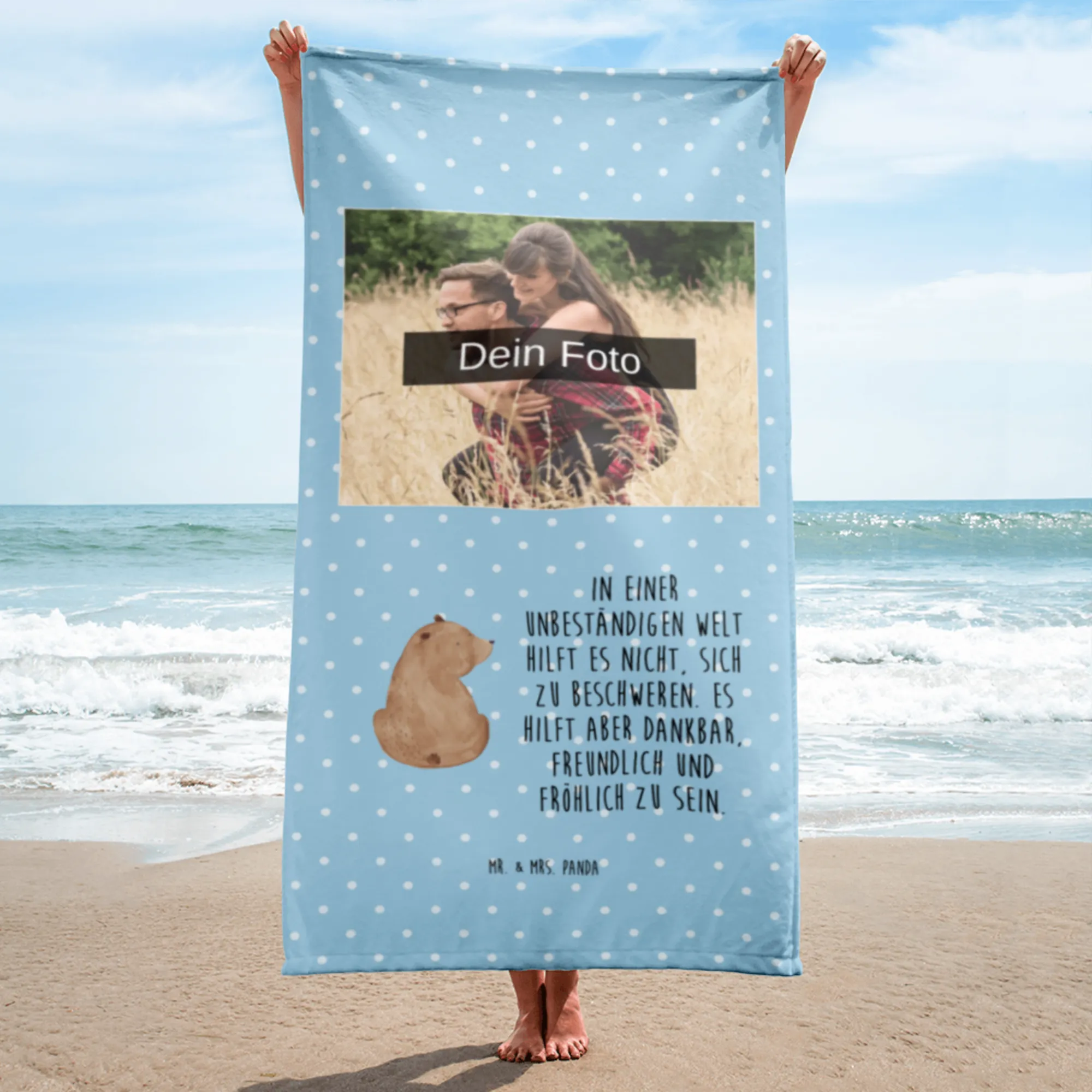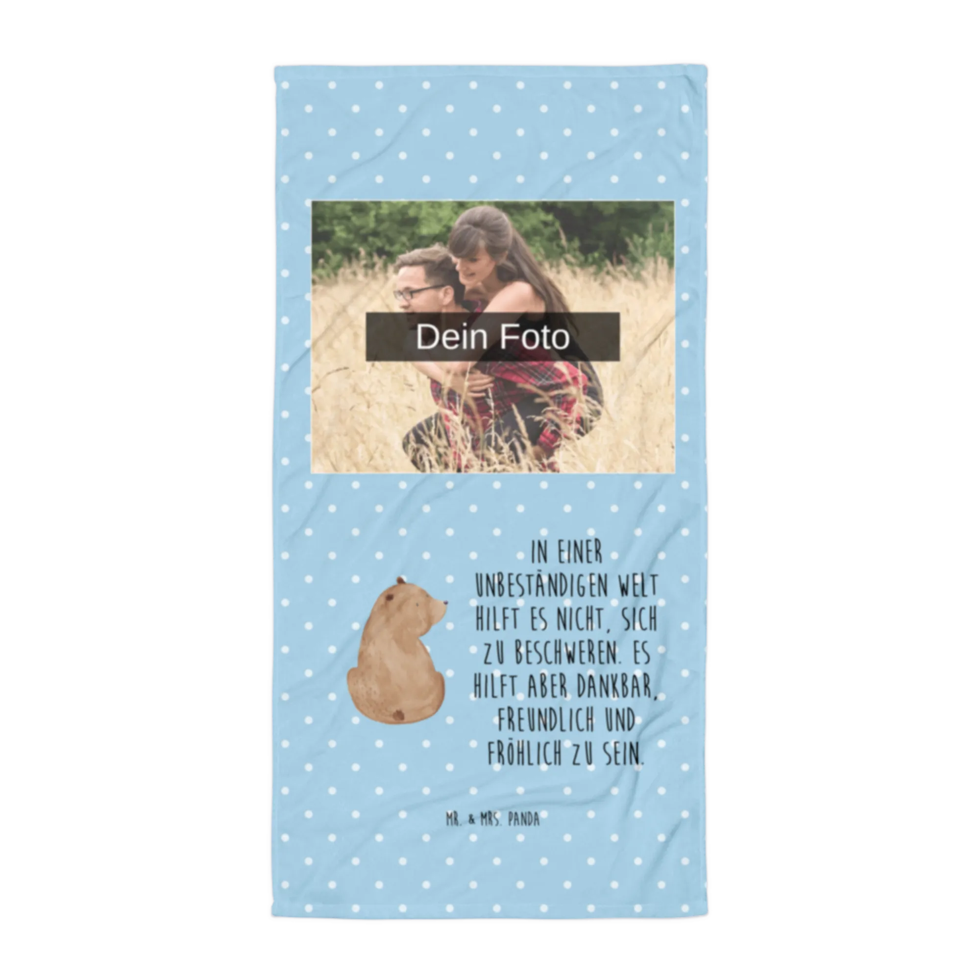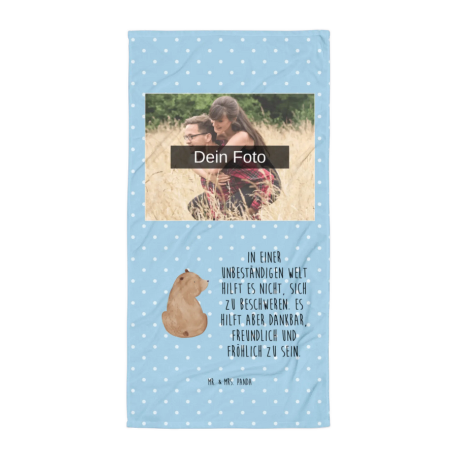Das Foto XL Handtuch von Mr. & Mrs. Panda ist dein perfekter Begleiter für jedes Abenteuer! Mit seinen großzügigen Maßen von 1520 mm x 760 mm und einer angenehmen Dicke von 7 mm ist es super weich dank seines hochwertigen Baumwollfrottees. Ob im Schwimmbad, am Strand oder in der Sauna – dieses Handtuch ist immer die beste Wahl. Das Besondere: Du kannst es mit deinem eigenen Bild personalisieren! Achte darauf, dass dein Foto in hoher Auflösung vorliegt, um die besten Ergebnisse zu erzielen. Die Rückseite ist aus speziell Wasser absorbierendem Frottee, sodass du schnell und bequem abtrocknen kannst. Es ist leicht in der Maschine bei 30°C zu reinigen. Genieße die bunten, fröhlichen Designs von Mr. & Mrs. Panda, die deinem Alltag einen Hauch von Freude verleihen werden.