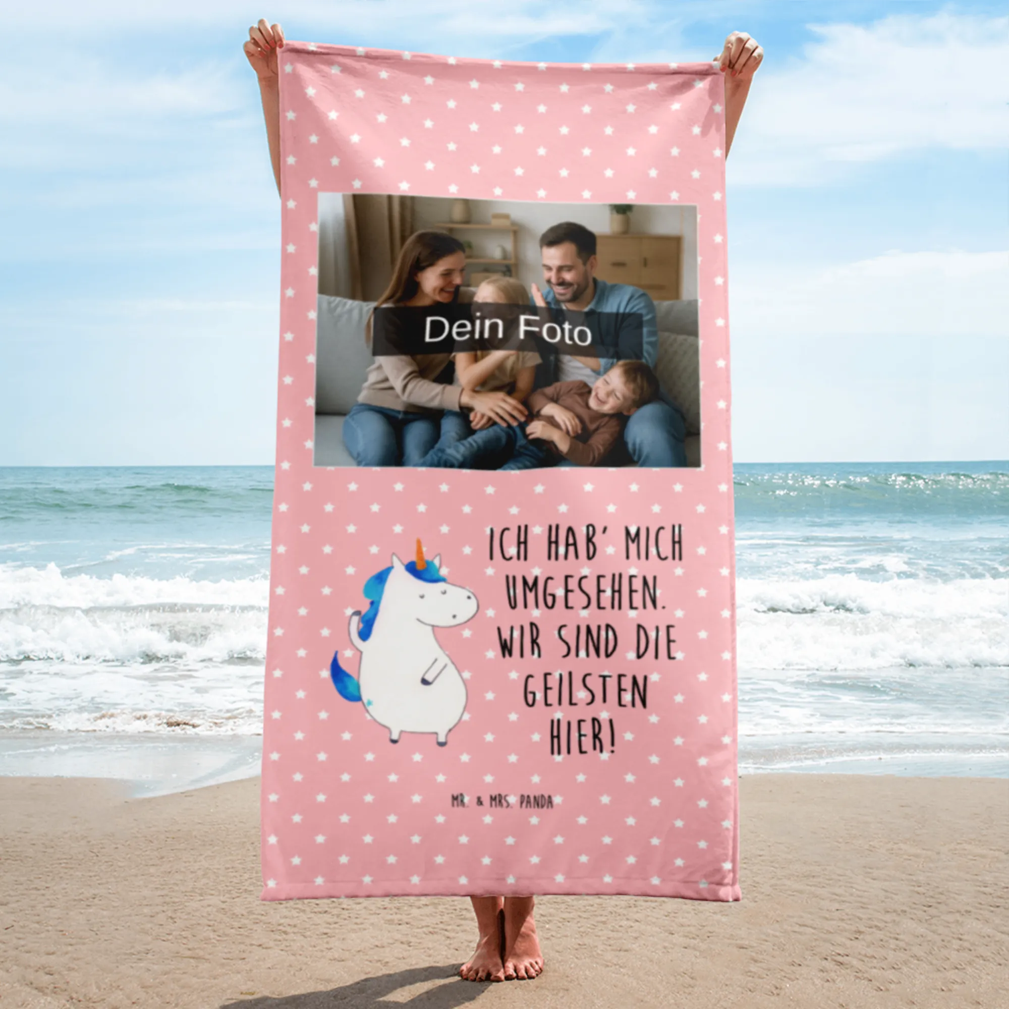 Das Foto XL Handtuch von Mr. & Mrs. Panda ist der perfekte Begleiter für jeden Tag! Mit seinen großzügigen Abmessungen von 1520 mm x 760 mm sorgt es für jede Menge Platz zum Entspannen. Der kuschelige Baumwollfrottee ist nicht nur weich, sondern auch ultra saugfähig, was ihn ideal für den Strand, die Sauna oder das Schwimmbad macht. Was unser Handtuch besonders macht? Du kannst es mit deinem Wunschfoto personalisieren! So wird dein Handtuch zu einem Unikat, das Freude bringt und bewundernde Blicke auf sich zieht. Achte darauf, dass das Foto hochauflösend ist, um ein tolles Druckergebnis zu erzielen. Das Handtuch ist pflegeleicht und kann unkompliziert bei 30°C in der Waschmaschine gewaschen werden. Der Frottee auf der Rückseite ist besonders wasserabsorbierend, sodass du nach dem Schwimmen schnell abtrocknen kannst. Egal, wo du bist, das Foto XL Handtuch wird immer zur Seite stehen und deinen Tag aufheitern!