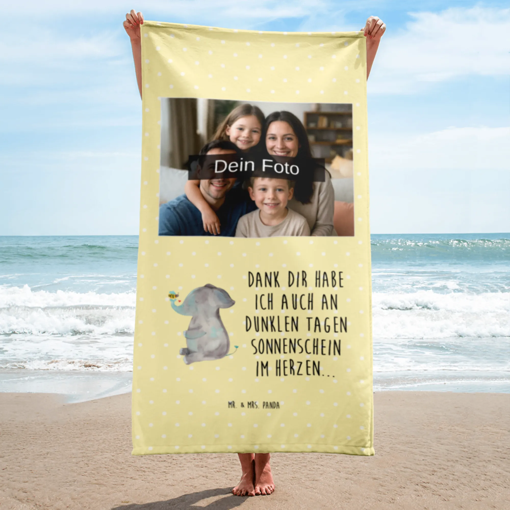 Das Foto XL Handtuch von Mr. & Mrs. Panda ist der perfekte Begleiter für jeden Tag! Mit seinen großzügigen Abmessungen von 1520 mm x 760 mm sorgt es für jede Menge Platz zum Entspannen. Der kuschelige Baumwollfrottee ist nicht nur weich, sondern auch ultra saugfähig, was ihn ideal für den Strand, die Sauna oder das Schwimmbad macht. Was unser Handtuch besonders macht? Du kannst es mit deinem Wunschfoto personalisieren! So wird dein Handtuch zu einem Unikat, das Freude bringt und bewundernde Blicke auf sich zieht. Achte darauf, dass das Foto hochauflösend ist, um ein tolles Druckergebnis zu erzielen. Das Handtuch ist pflegeleicht und kann unkompliziert bei 30°C in der Waschmaschine gewaschen werden. Der Frottee auf der Rückseite ist besonders wasserabsorbierend, sodass du nach dem Schwimmen schnell abtrocknen kannst. Egal, wo du bist, das Foto XL Handtuch wird immer zur Seite stehen und deinen Tag aufheitern!