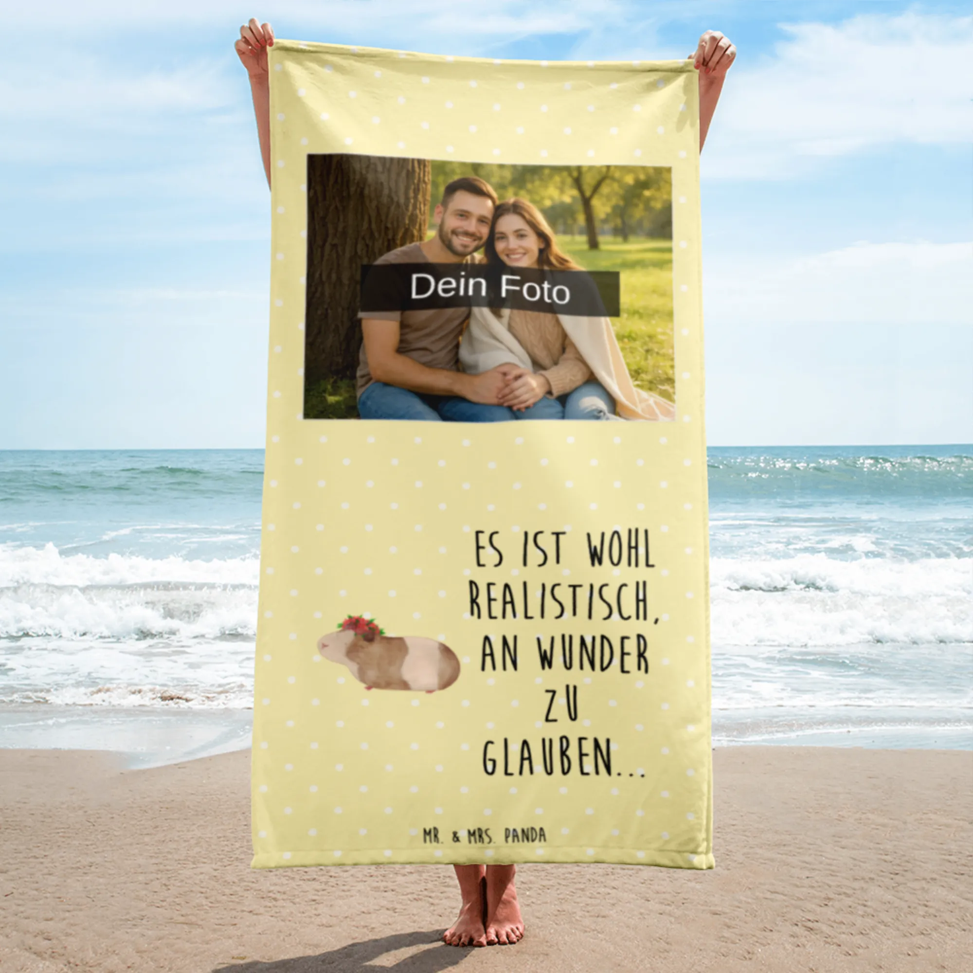 Mach dein Handtuch zu einem Unikat! Lade dein Foto hoch und entdecke das besondere Gefühl mit Mr. & Mrs. Panda.