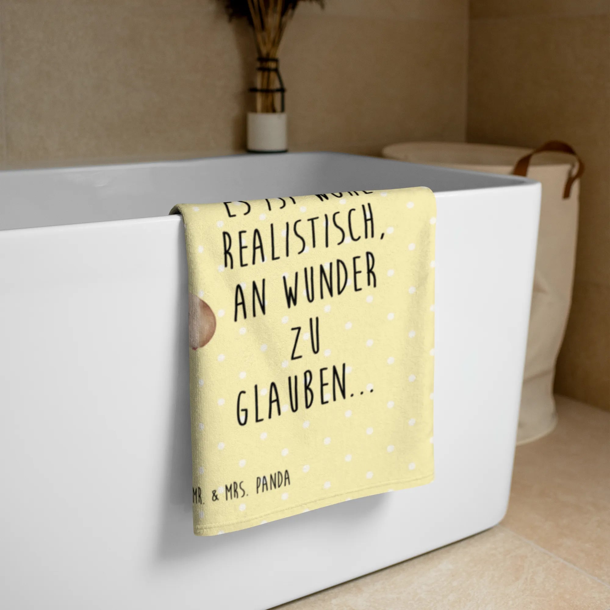 🐼 Flauschiges Handtuch mit Motiven und Sprüchen von Mr. & Mrs. Panda für höchsten Komfort.