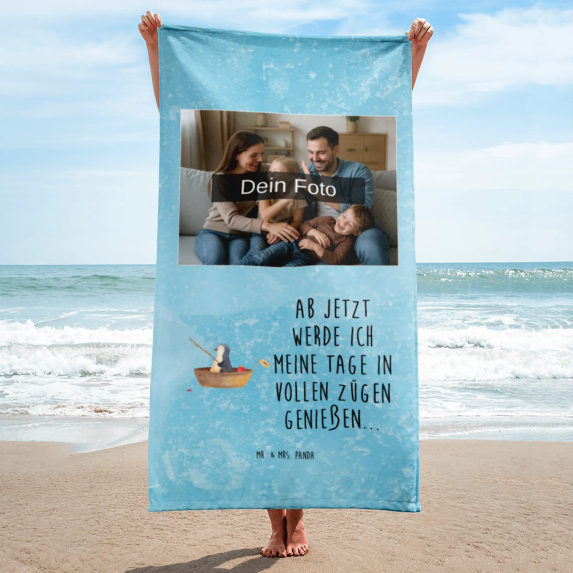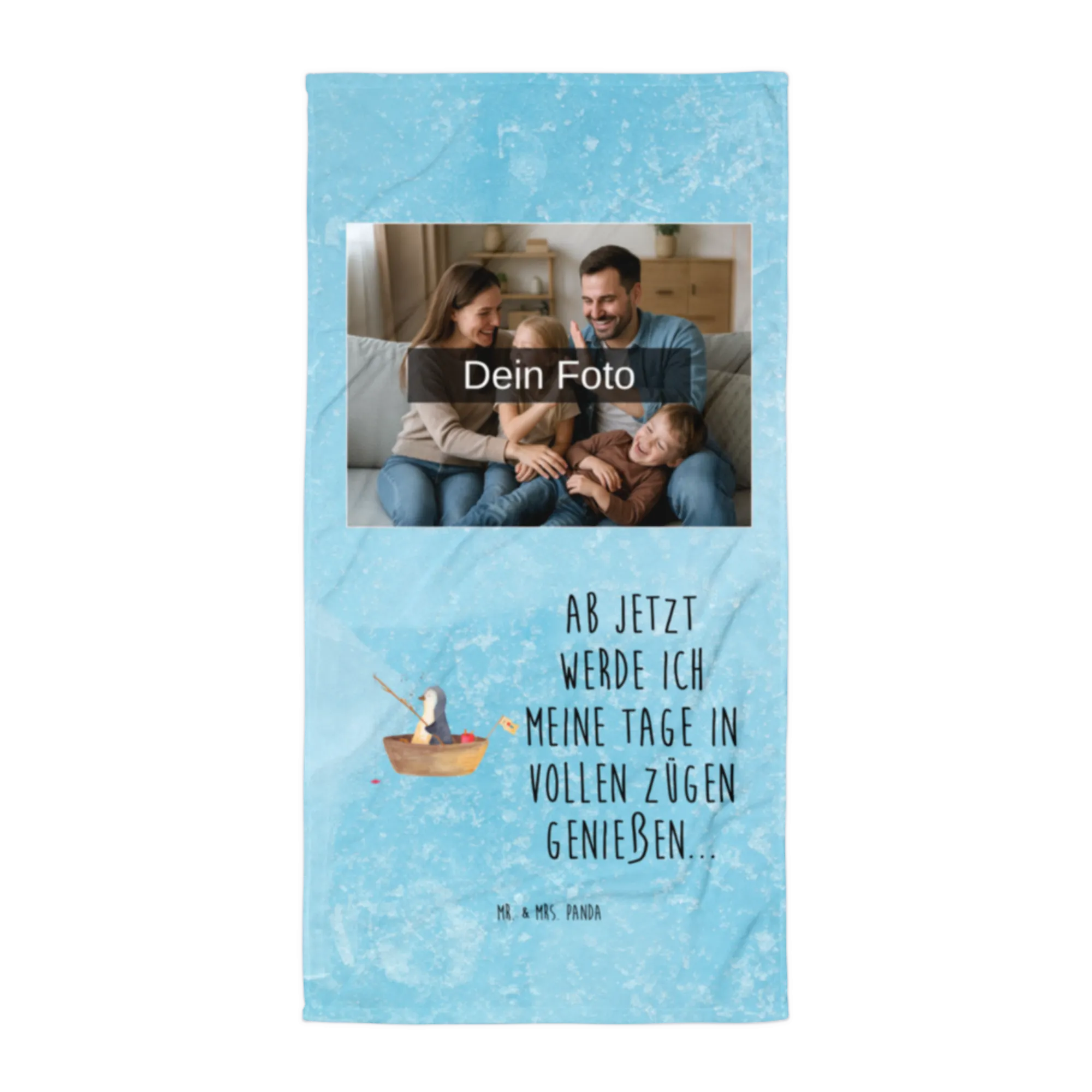 Mit dem Foto XL Handtuch von Mr. & Mrs. Panda wird jeder Tag am Strand oder im Schwimmbad zu einem besonderen Erlebnis! Dieses extra große Handtuch misst 1520 mm x 760 mm und hat eine Dicke von 7 mm. Gefertigt aus hochwertigem Baumwollfrottee, ist es nicht nur super weich, sondern auch ultra saugfähig. Das Handtuch ist mit bunten, fröhlichen Motiven und Sprüchen bedruckt und erlaubt es dir, dein individuelles Foto für eine tolle persönliche Note hinzuzufügen. Achte darauf, dass dein Bild in hohem Auflösung vorliegt – so wird das Druckergebnis optimal. Die wasserabsorbierende Frotteerückseite sorgt dafür, dass du nach einem Sprung ins Wasser schnell abtrocknen kannst. Das Foto XL Handtuch ist pflegeleicht und kann bei 30°C in der Waschmaschine gewaschen werden. Lass dir diese bunte Freude nicht entgehen und genieße die Unbeschwertheit am Wasser mit Mr. & Mrs. Panda!