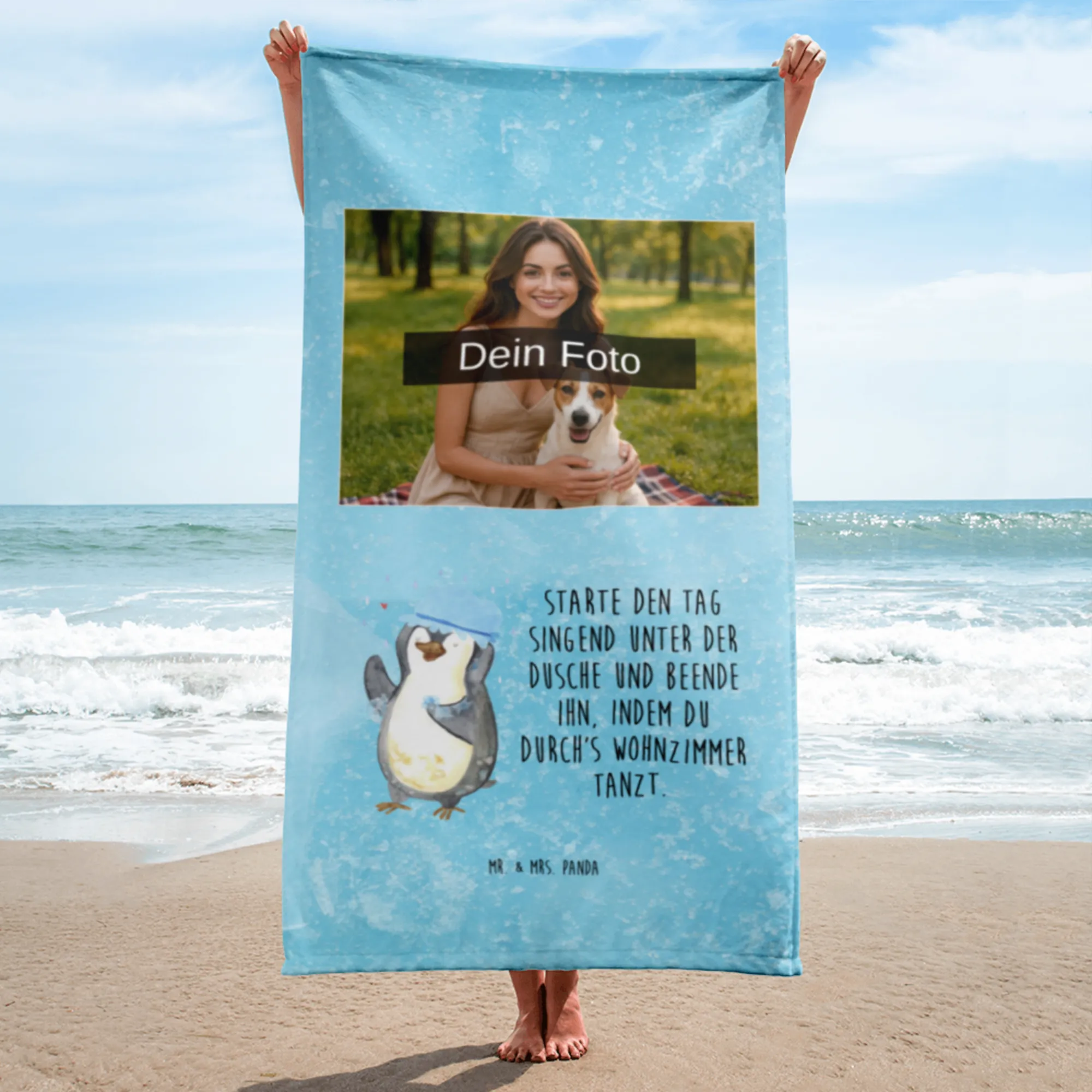 Das Foto XL Handtuch von Mr. & Mrs. Panda ist der perfekte Begleiter für jeden Tag! Mit seinen großzügigen Abmessungen von 1520 mm x 760 mm sorgt es für jede Menge Platz zum Entspannen. Der kuschelige Baumwollfrottee ist nicht nur weich, sondern auch ultra saugfähig, was ihn ideal für den Strand, die Sauna oder das Schwimmbad macht. Was unser Handtuch besonders macht? Du kannst es mit deinem Wunschfoto personalisieren! So wird dein Handtuch zu einem Unikat, das Freude bringt und bewundernde Blicke auf sich zieht. Achte darauf, dass das Foto hochauflösend ist, um ein tolles Druckergebnis zu erzielen. Das Handtuch ist pflegeleicht und kann unkompliziert bei 30°C in der Waschmaschine gewaschen werden. Der Frottee auf der Rückseite ist besonders wasserabsorbierend, sodass du nach dem Schwimmen schnell abtrocknen kannst. Egal, wo du bist, das Foto XL Handtuch wird immer zur Seite stehen und deinen Tag aufheitern!