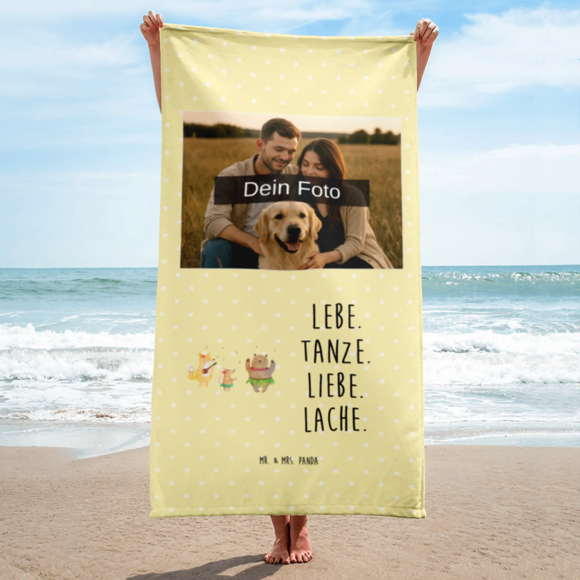 Entdecke das extra große Foto XL Handtuch von Mr. & Mrs. Panda, das dir mit seinen Maßen von 1520 mm x 760 mm und einer Dicke von 7 mm immer einen Hauch von Luxus verleiht. Hergestellt aus kuscheligem Baumwollfrottee ist es nicht nur ultra saugfähig, sondern auch unglaublich weich. Verziert mit bunten Motiven und Sprüchen von Mr. & Mrs. Panda bringt dieses Handtuch Farbe und Freude in dein Badezimmer oder an den Strand. Du kannst dein persönliches Handtuch sogar mit deinem Wunschfoto gestalten – perfekt für unvergessliche Urlaubserinnerungen! Achte darauf, dass dein Bild in einer hohen Auflösung hochgeladen wird, damit das Druckergebnis klar und schön ist. Das Handtuch ist leicht bei 30°C waschbar und hat eine spezielle wasserabsorbierende Frotteerückseite. Egal, ob am Strand, im Schwimmbad oder in der Sauna – das Foto XL Handtuch wird dein bester Begleiter sein und wird sicher bewundernde Blicke auf sich ziehen.