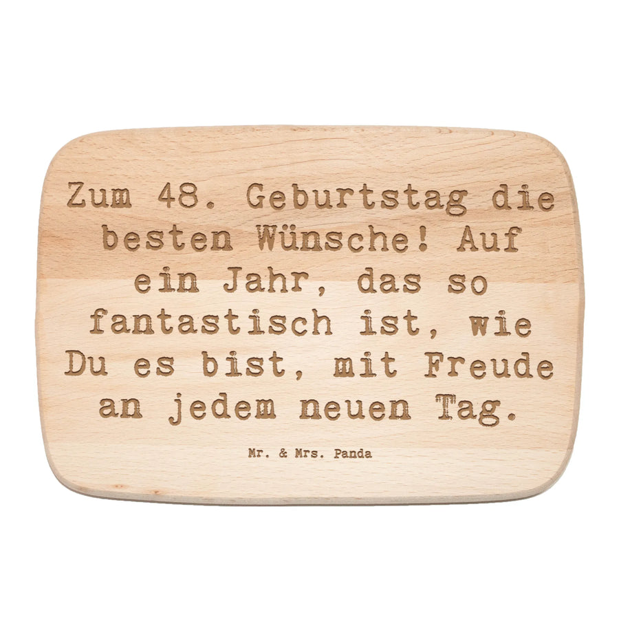 Das Frühstücksbrett von Mr. & Mrs. Panda ist das perfekte Geschenk zum 48. Geburtstag! Mit der liebevollen Gravur "Zum 48. Geburtstag die besten Wünsche! Auf ein Jahr, das so fantastisch ist, wie Du es bist, mit Freude an jedem neuen Tag." wird dieses robuste Holzbrett aus Birkensperrholz zu einem ganz besonderen Highlight in jeder Küche.
