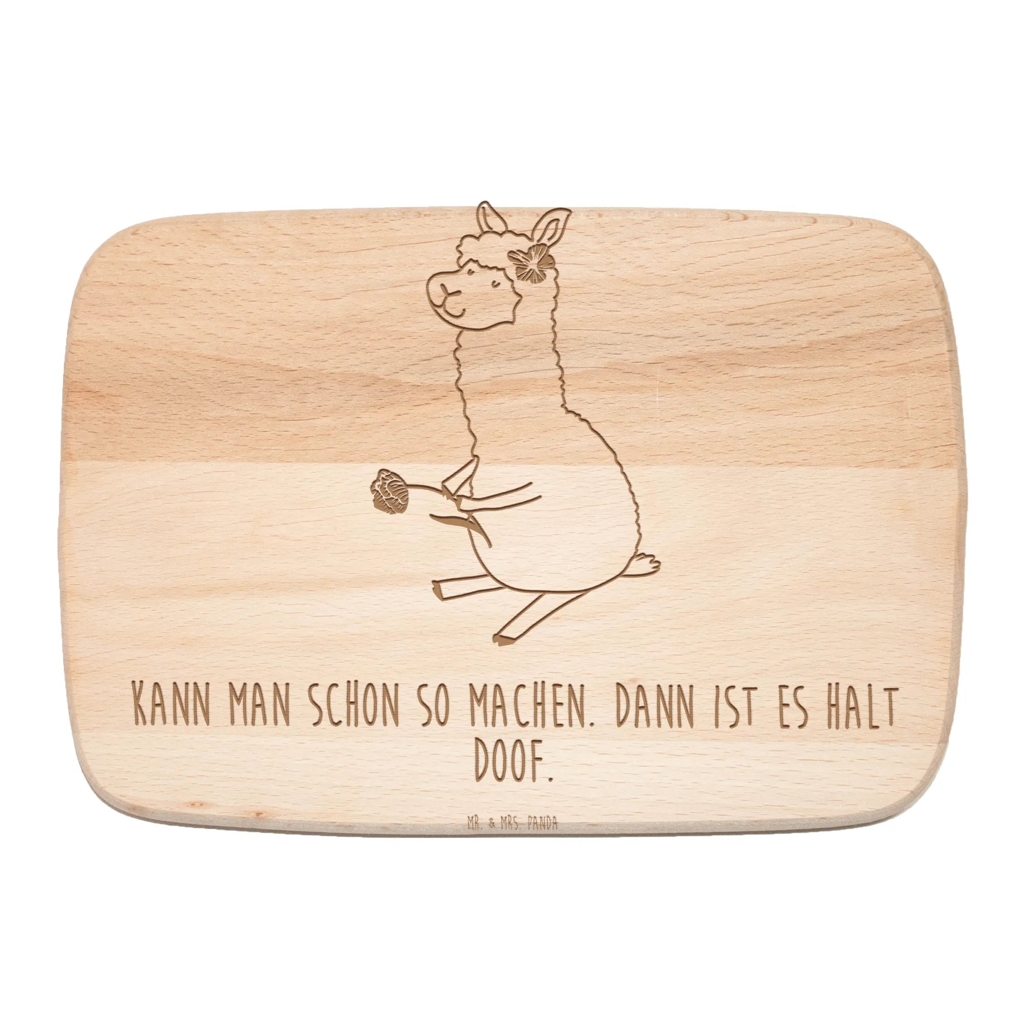 Entdecke das bezaubernde Frühstücksbrett mit dem niedlichen Alpaka-Blume-Motiv von Mr. & Mrs. Panda. Dieses einzigartige und edle Holzbrett ist nicht nur ein praktisches Küchengerät, sondern auch ein wahres Kunstwerk, das deinen Tisch zum Strahlen bringt! Hergestellt aus hochwertigem, FSC-zertifiziertem Buchenholz, bietet es eine robuste Oberfläche, perfekt für dein Frühstück oder die Präsentation leckerer Snacks. Das Lieblingsmotiv unserer Kollektion zeigt ein süßes Alpaka mit einer Blume im Haar und einer weiteren Blume in der Hand – eine ständige Erinnerung daran, die Schönheit der Natur zu schätzen.