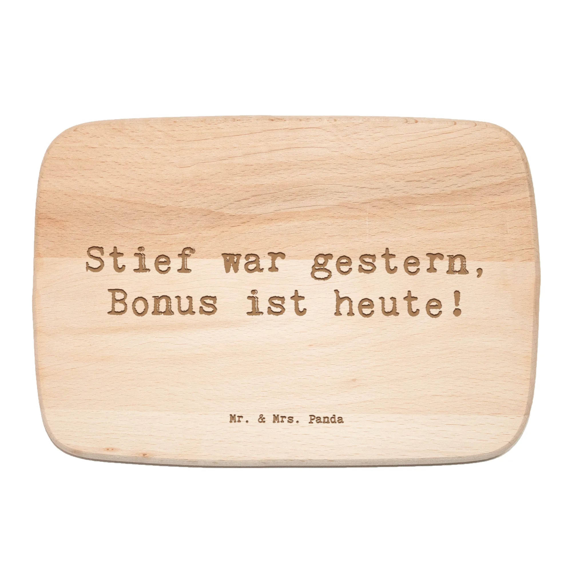 Dieses Frühstücksbrett aus robustem Birkenholz misst 130 mm x 230 mm und ist nicht nur ideal zum Servieren von Frühstück, sondern auch zum Schneiden von frischen Lebensmitteln und Präsentieren von Snacks. Die langlebige Lasergravur sorgt dafür, dass der Spruch "Stief war gestern, Bonus ist heute!" immer gut zur Geltung kommt und Erinnerungen an viele gemeinsame Momente weckt.