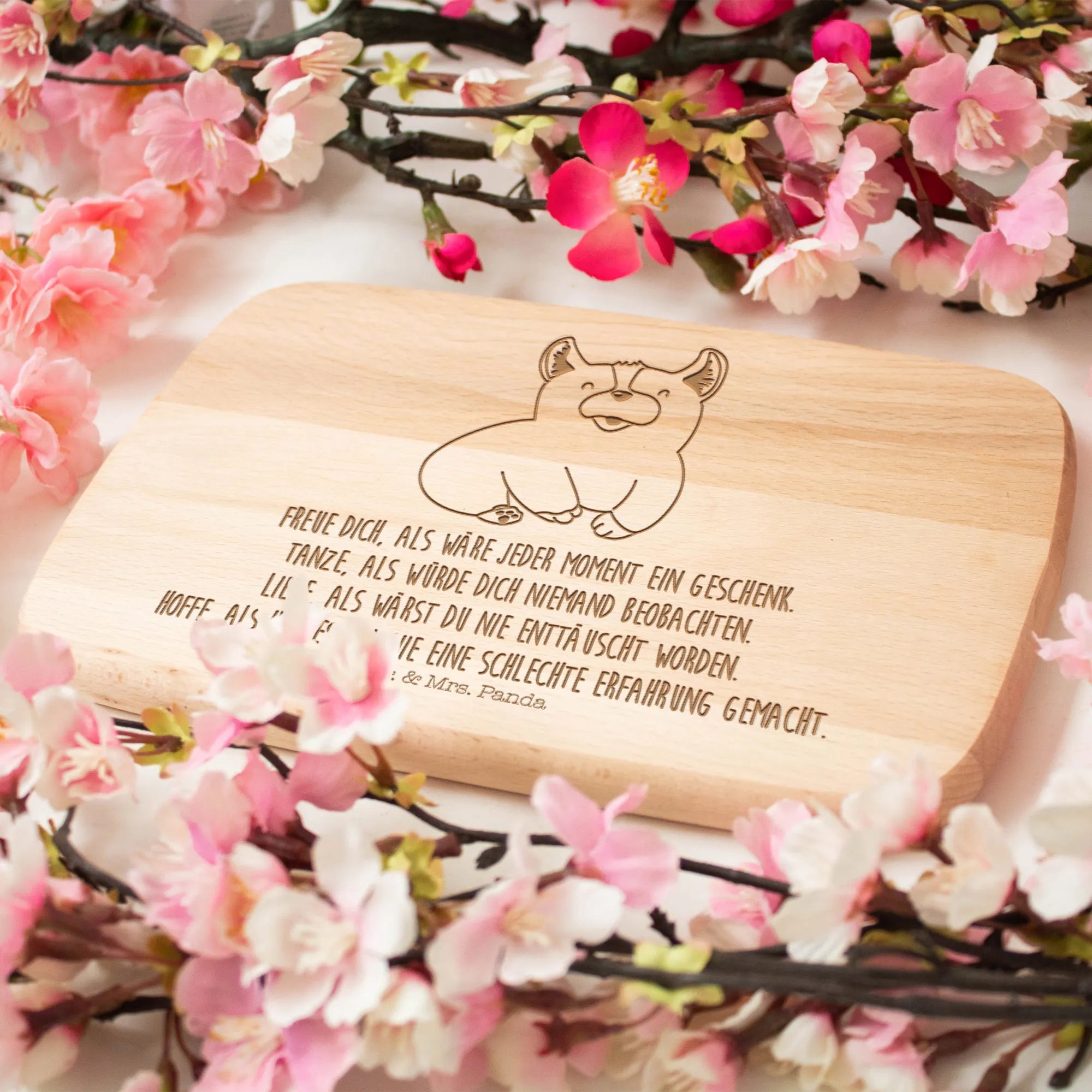 Ein Geschenk für jeden, der Hunde liebt und die frohe Botschaft schätzt, die dieses Brettchen übermittelt. Es ist nicht nur nützlich, sondern bereichert auch Deine Küche mit Freude und Stil. Verschenke Lebensfreude und zeige Deine Wertschätzung für FreundInnen, Verwandte und alle Hundeliebhaber in Deinem Umfeld. Mit dem Frühstücksbrett Corgie von Mr. & Mrs. Panda kannst Du den perfekten Einstieg in den Tag finden.
