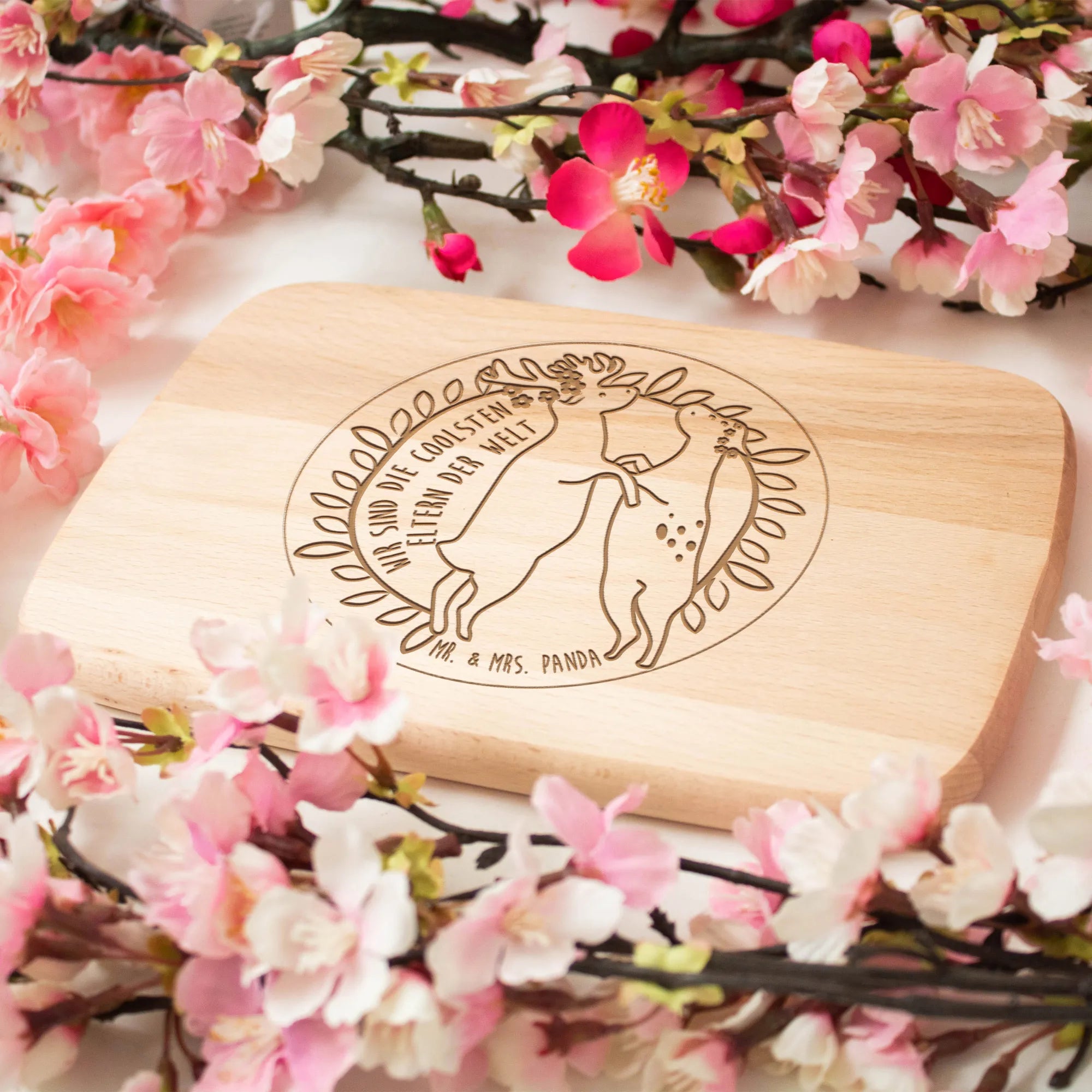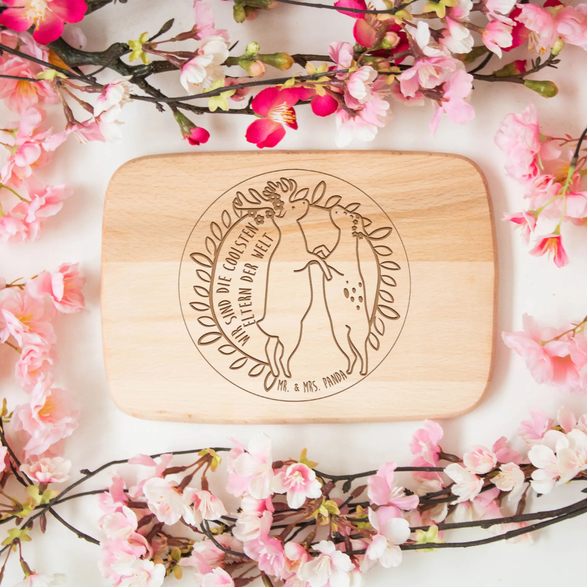 Das Frühstücksbrett Hirsch Eltern von Mr. & Mrs. Panda ist ein bezauberndes und funktionales Geschenk, das in jede Küche gehört. Es ist nicht nur ein einfaches Holzbrett; es bringt Freude und Liebe in jeden Frühstücksmoment. Das einzigartige Design mit dem süßen Hirsch-Motiv zeigt die Liebe zwischen Eltern und Kindern - ideal für alle, die ihre Familie schätzen und diese besonderen Momente zelebrieren möchten.