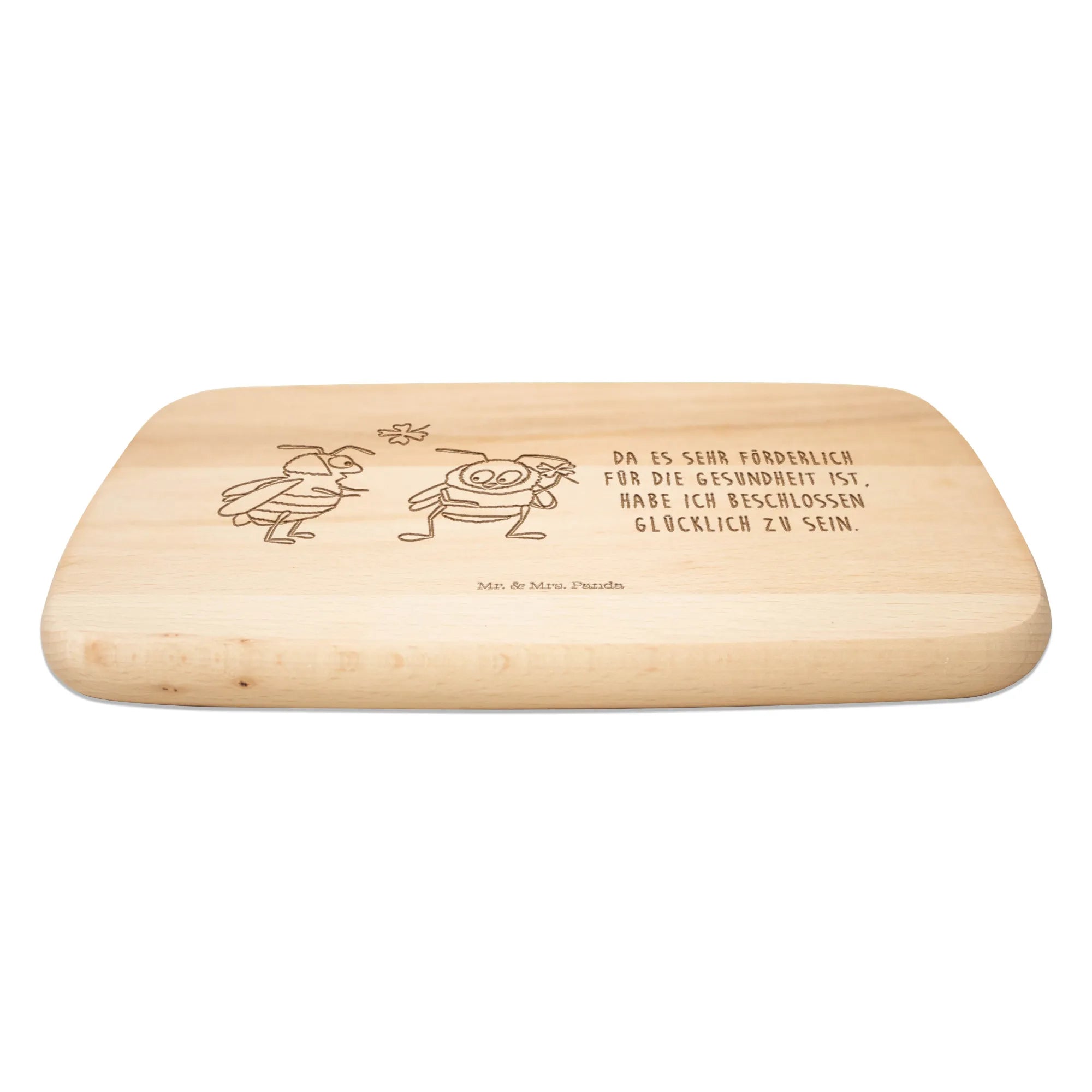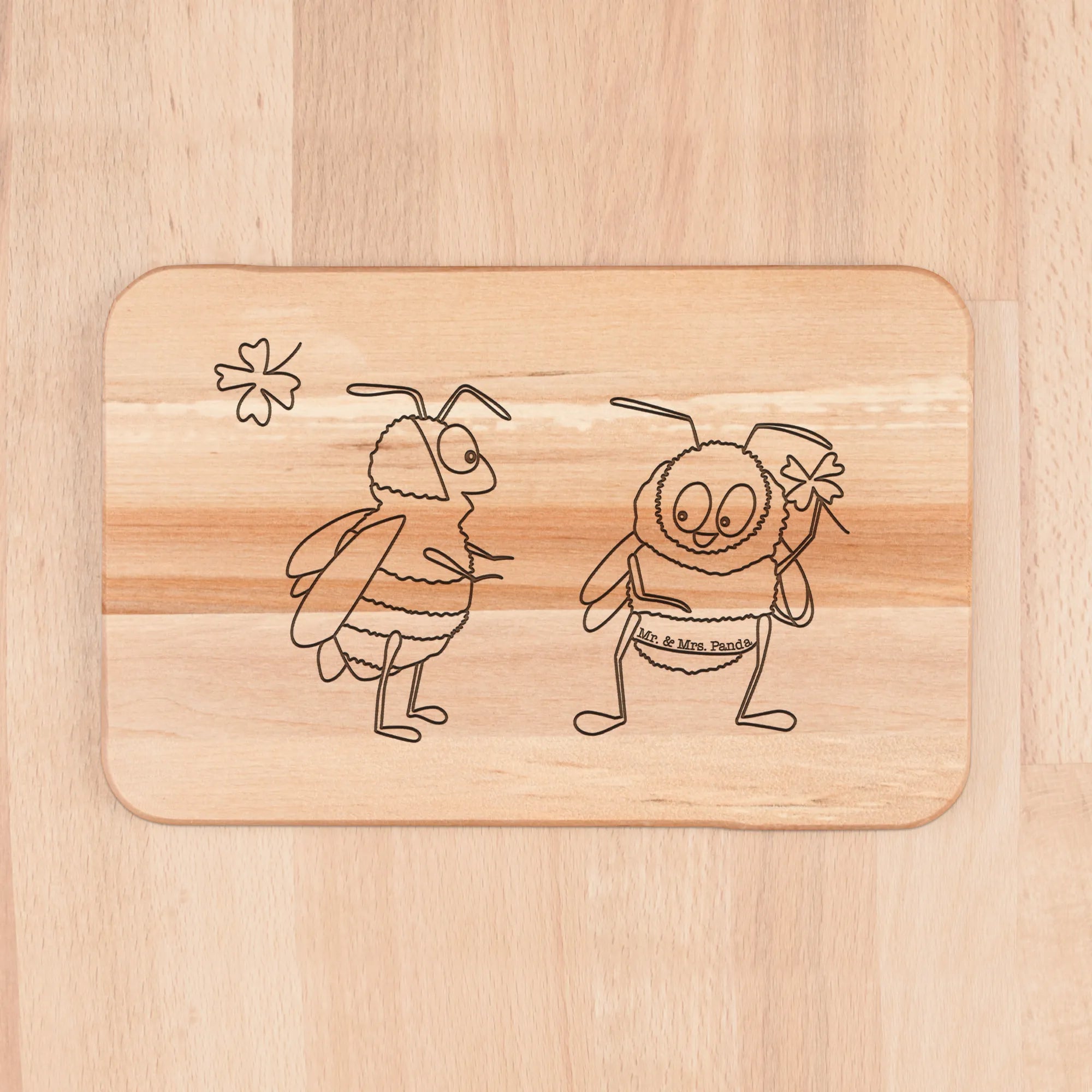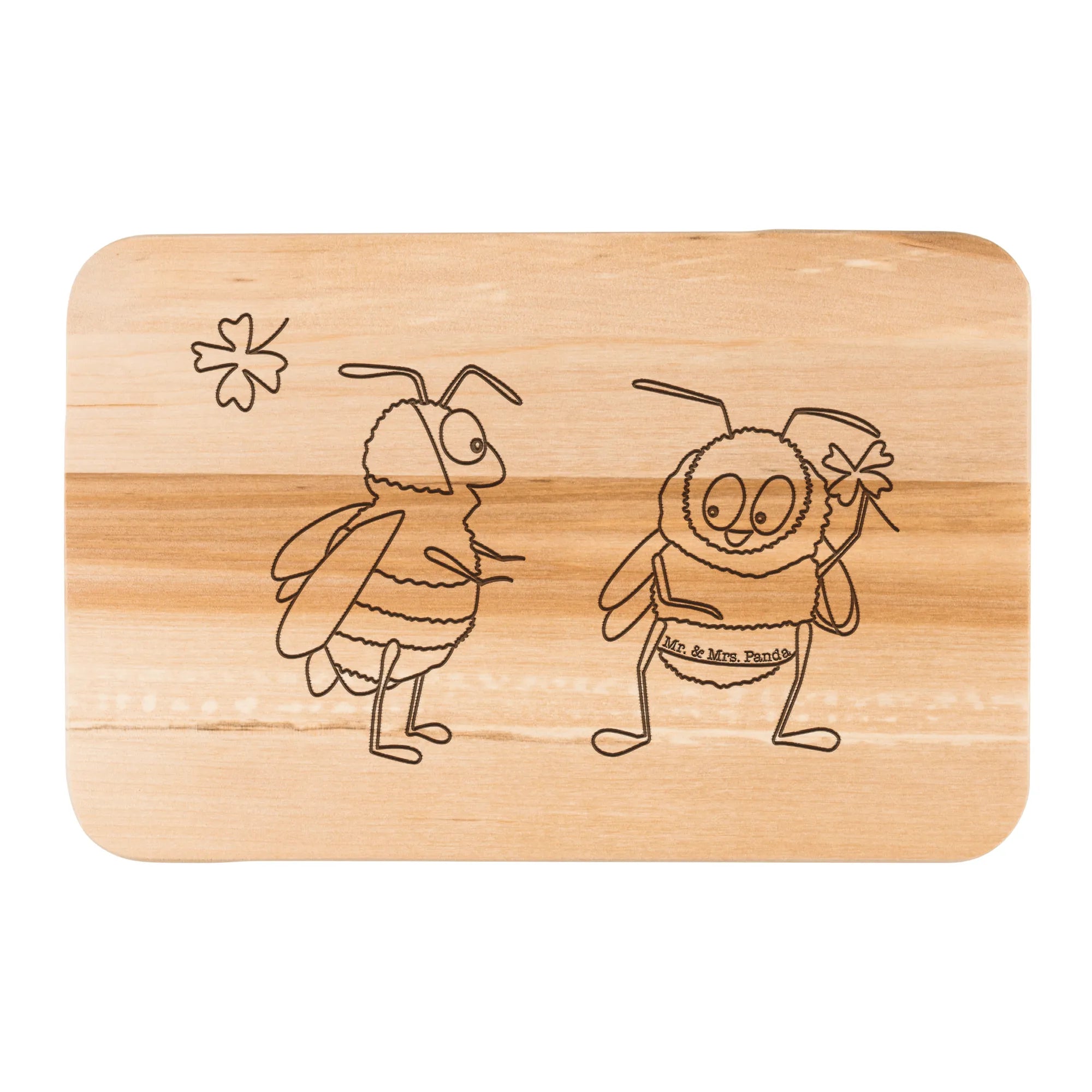 Das Frühstücksbrett Hummeln mit Kleeblatt von Mr. & Mrs. Panda ist mehr als nur ein praktisches Küchenutensil – es ist ein Zeichen für gute Laune und positive Energie! Mit einem wunderschönen Motiv, das zwei niedliche Hummeln zeigt, die zusammen ein Kleeblatt halten, strahlt dieses Brett Lebensfreude und Verbundenheit aus.