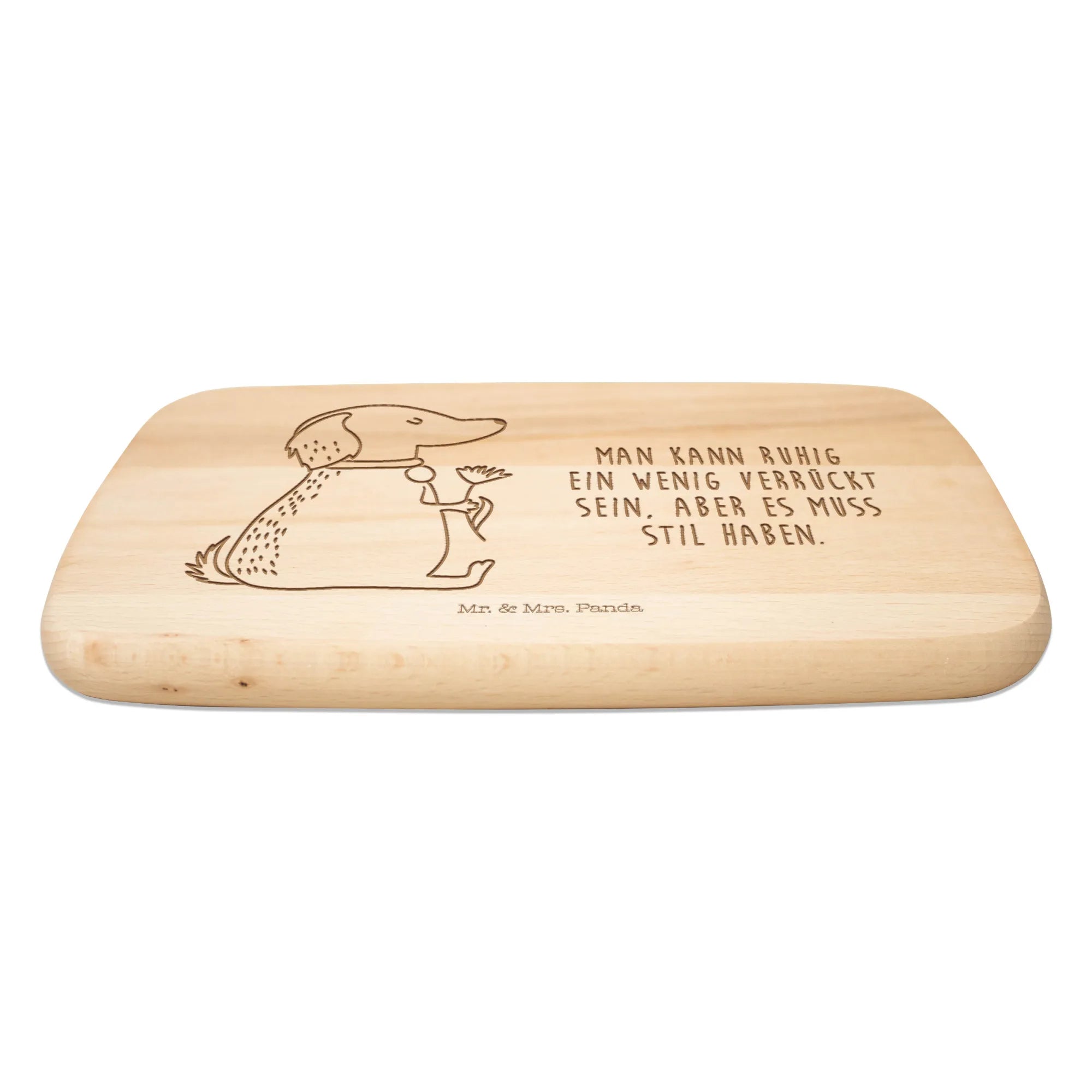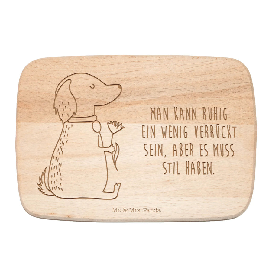 Das Frühstücksbrett eignet sich hervorragend für verschiedene Anlässe – sei es als Geburtstagsgeschenk, zur Einweihung einer neuen Wohnung oder einfach nur so, um einem Hundeliebhaber eine Freude zu machen. Der Slogan "Man kann ruhig ein wenig verrückt sein, aber es muss Stil haben" spricht für sich selbst und passt perfekt zu dem charmanten Design.