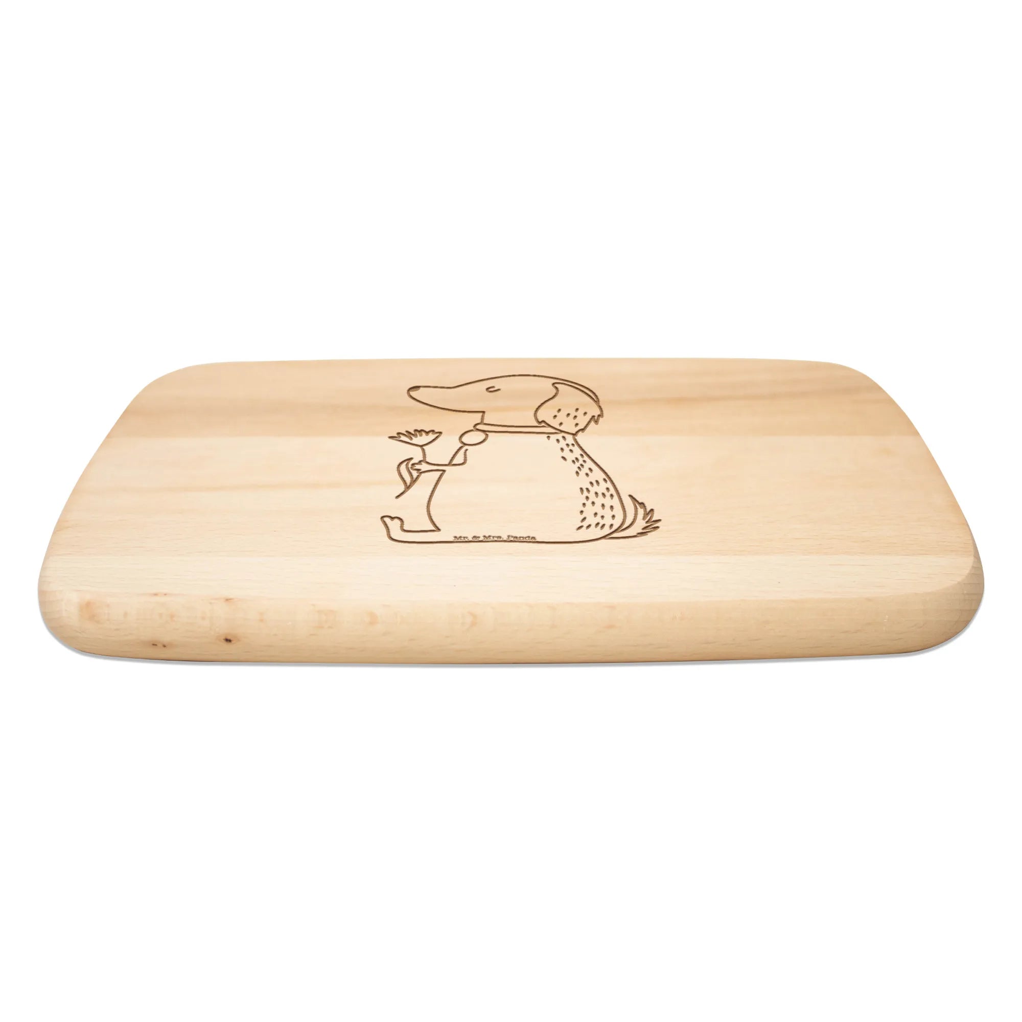 Das Frühstücksbrett Hund Blume von Mr. & Mrs. Panda ist das perfekte Geschenk für jedes Tierliebhaber-Haus. Mit seinem charmanten Design einer süßen Hündin, die eine Blume im Fell trägt, zaubert es sofort ein Lächeln auf dein Gesicht. Dieses wunderschöne Frühstücksbrett aus hochwertigem, FSC-zertifiziertem Buchenholz ist nicht nur stilvoll, sondern auch äußerst funktional. Mit einer Größe von 130 mm x 230 mm bietet es ausreichend Platz, um dein Frühstück oder leckere Snacks ansprechend zu präsentieren.
