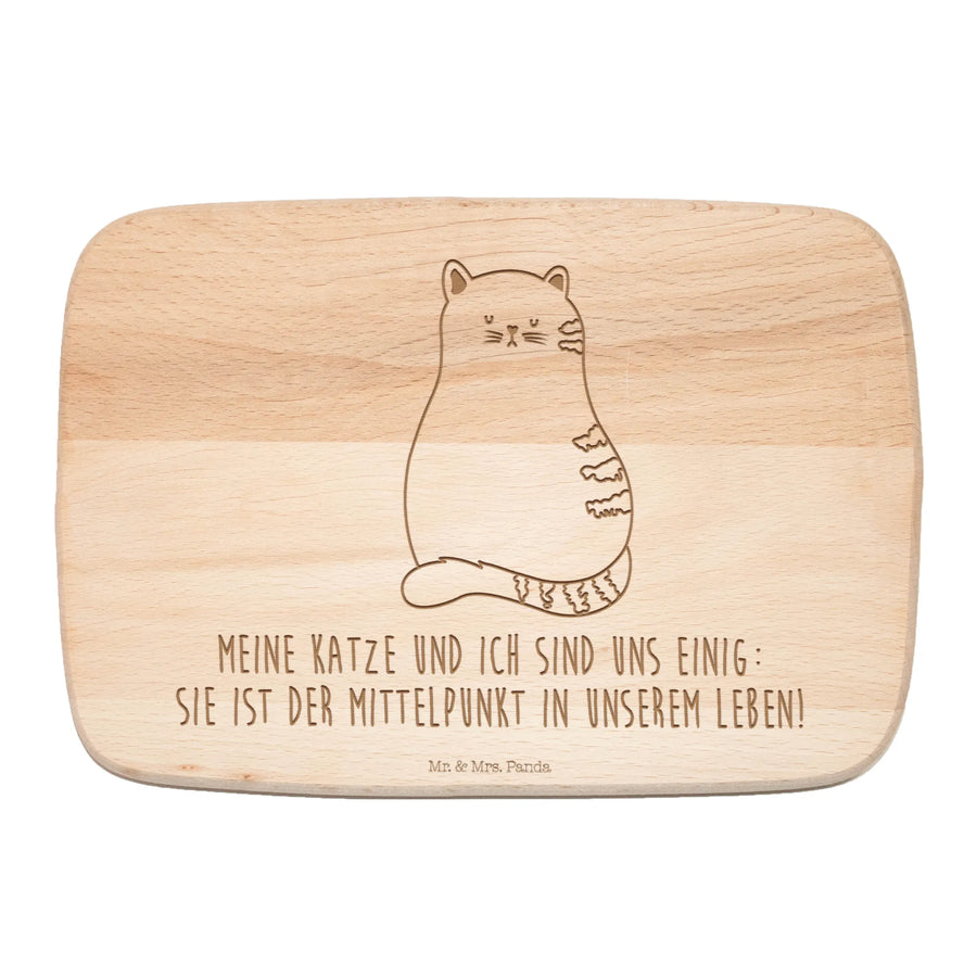 Wenn Du ein Geschenk für einen Katzenfan suchst, dann ist dieses wunderschöne Frühstücksbrett ein ideales Präsent. Der eingravierte Spruch "Meine Katze und ich sind uns einig: sie ist der Mittelpunkt in unserem Leben!" bringt die Verbundenheit zu Deinem pelzigen Freund perfekt zum Ausdruck.