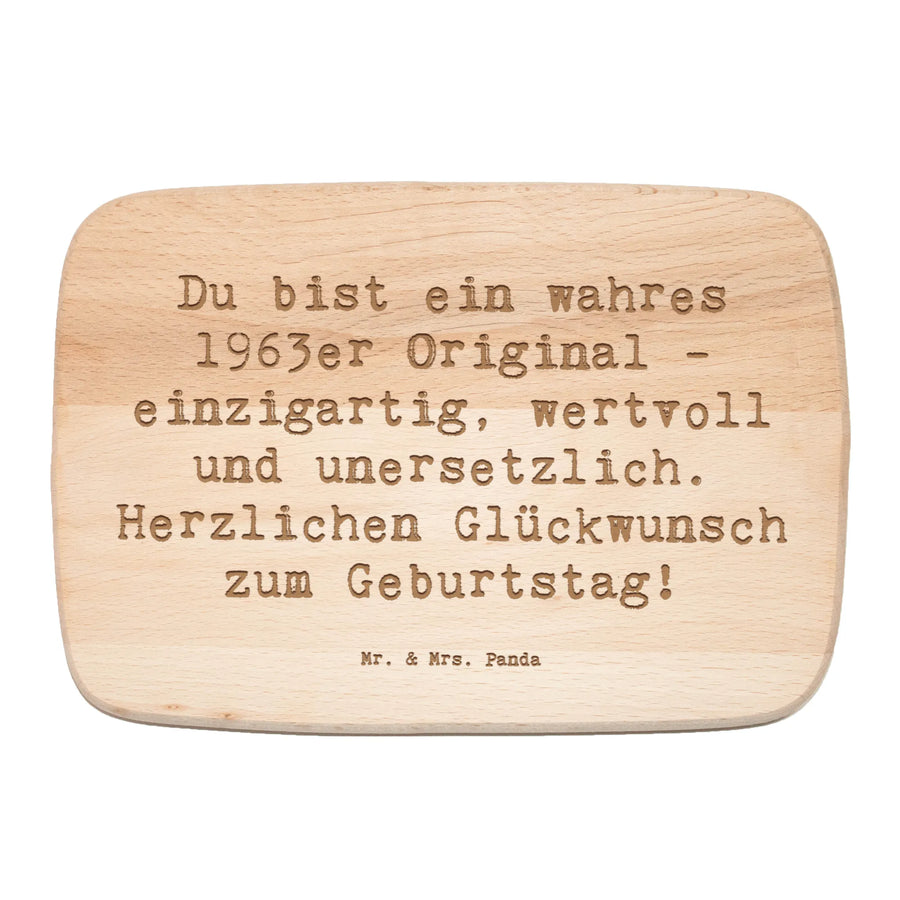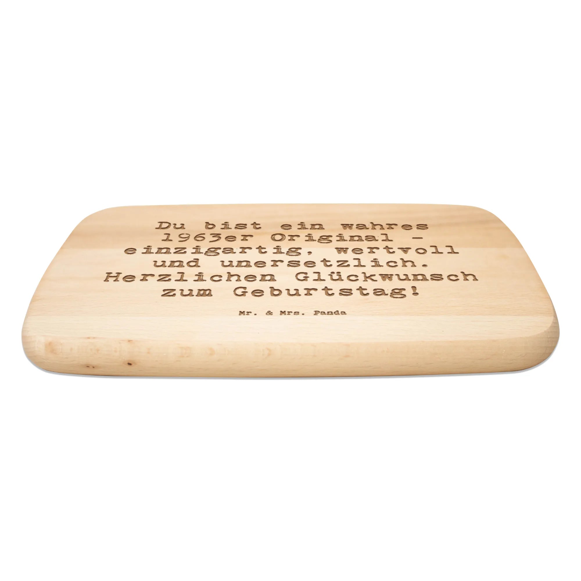 Das Frühstücksbrettchen von Mr. & Mrs. Panda ist das perfekte Geschenk für alle, die im Jahr 1963 geboren wurden. Mit dem bezaubernden Motiv und dem herzlichen Spruch "Du bist ein wahres 1963er Original - einzigartig, wertvoll und unersetzlich. Herzlichen Glückwunsch zum Geburtstag!" wird dieses Frühstücksbrett zu einem einzigartigen Begleiter in der Küche.