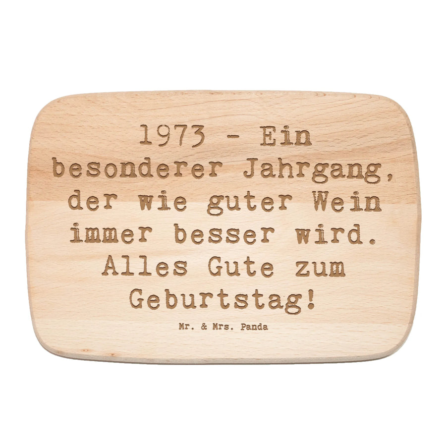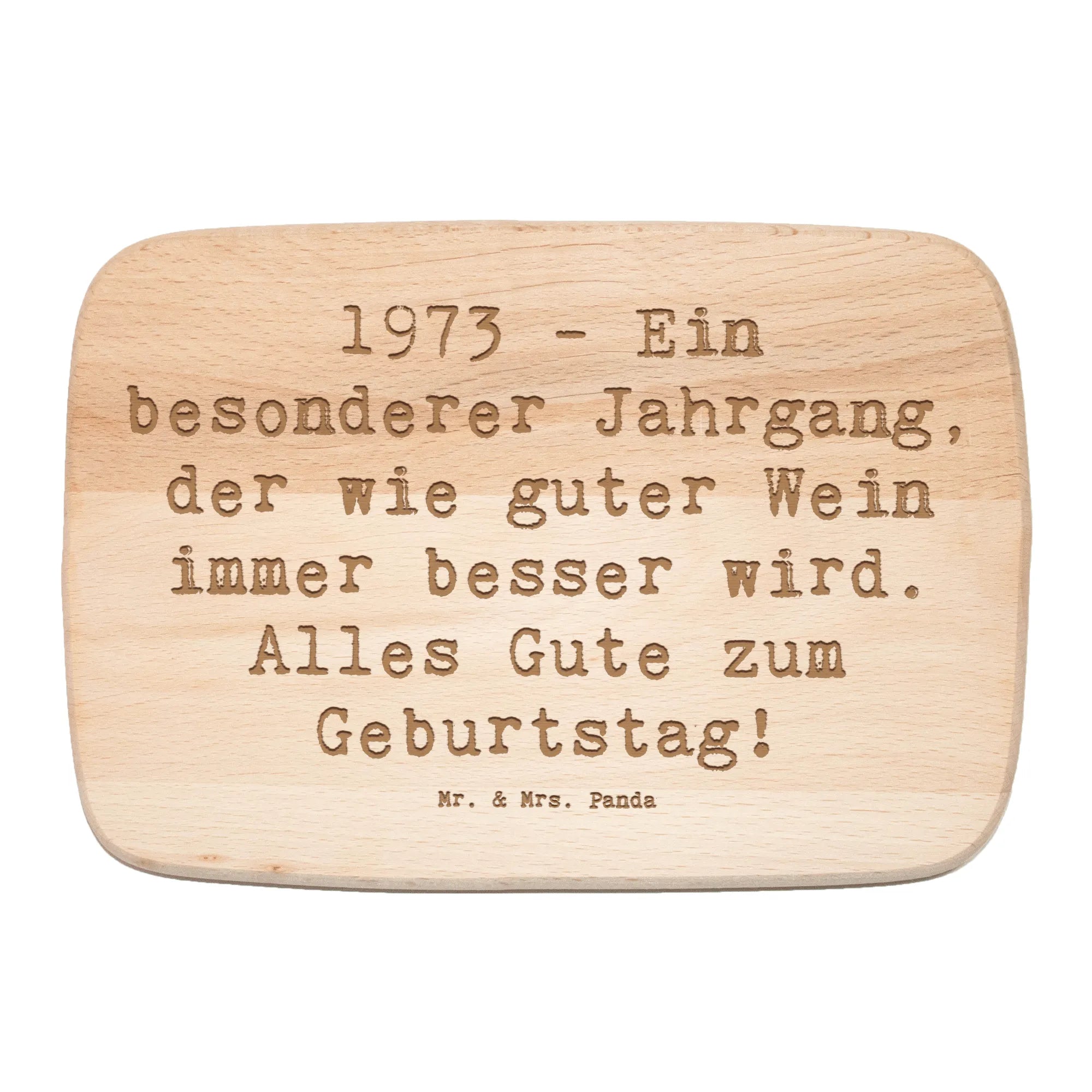 Das Frühstücksbrett von Mr. & Mrs. Panda mit dem Motto '1973 - Ein besonderer Jahrgang, der wie guter Wein immer besser wird. Alles Gute zum Geburtstag!' ist das perfekte Geschenk für alle, die 1973 geboren wurden! Dieses wunderschön gestaltete Holzbrett aus robustem Birkenholz ist mehr als nur ein Küchenutensil – es ist ein tolles Erinnerungsstück.