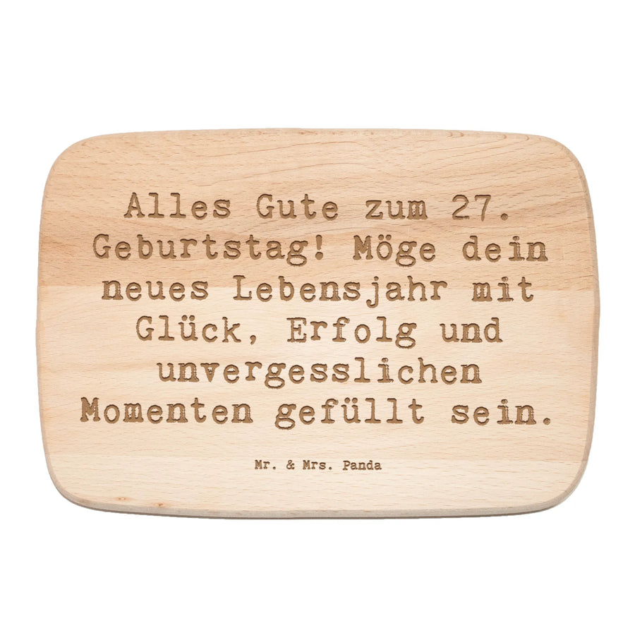 Suchst du nach einem besonderen Geschenk für den 27. Geburtstag? Dann ist unser Frühstücksbrett "Alles Gute zum 27. Geburtstag! Möge dein neues Lebensjahr mit Glück, Erfolg und unvergesslichen Momenten gefüllt sein" von Mr. & Mrs. Panda genau das Richtige für dich!