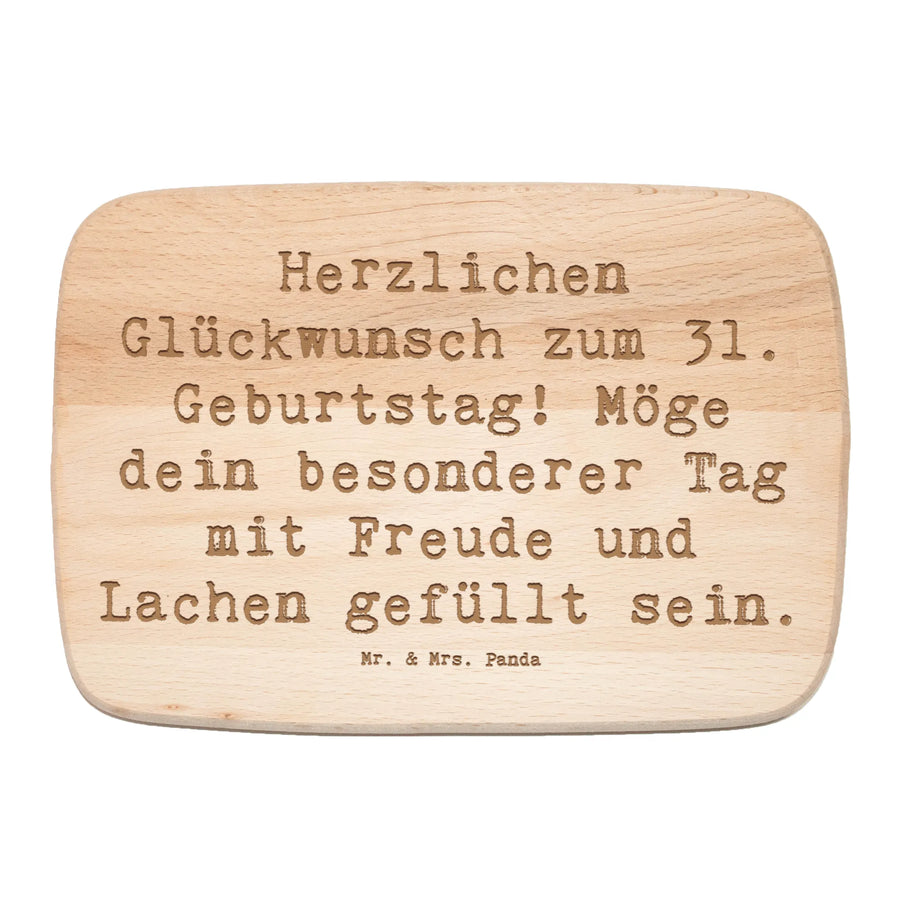 Das Frühstücksbrett von Mr. & Mrs. Panda ist das perfekte Geschenk für alle, die ihren 31. Geburtstag gebührend feiern möchten! Mit dem liebevollen Spruch "Herzlichen Glückwunsch zum 31. Geburtstag! Möge dein besonderer Tag mit Freude und Lachen gefüllt sein." lässt dieses Frühstücksbrett kein Herz unberührt.