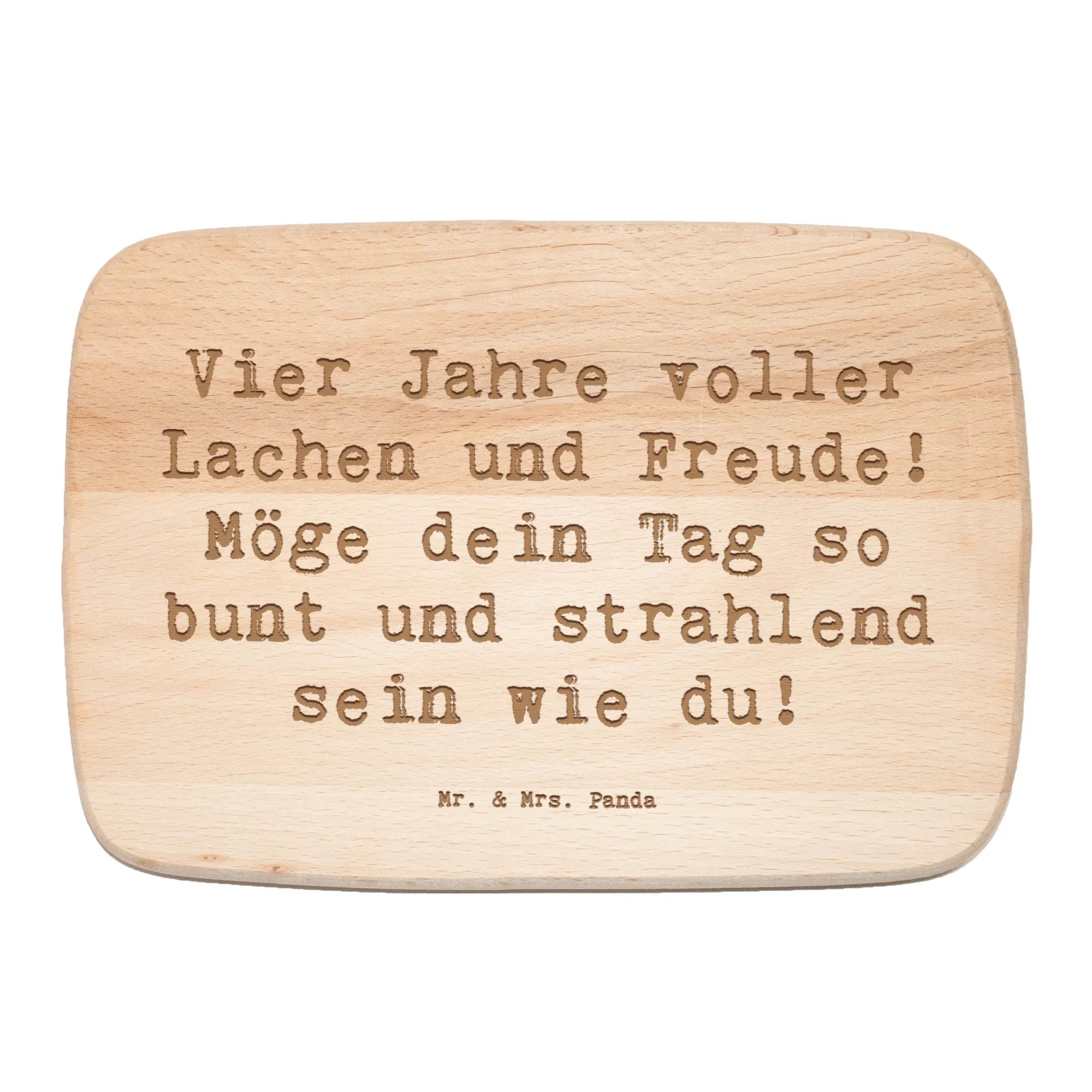 Das Frühstücksbrett von Mr. & Mrs. Panda ist das perfekte Geschenk für jeden kleinen Geburtstagskind, das seinen 4. Geburtstag feiert! Mit dem süßen Motiv "Vier Jahre voller Lachen und Freude! Möge dein Tag so bunt und strahlend sein wie du!" bringt dieses Holzbrett ein Lächeln auf jedes Gesicht. Es ist aus robustem Birkenholz gefertigt, das nicht nur langlebig ist, sondern auch mit einem liebevollen Naturöl veredelt wurde. Das Frühstücksbrett hat die ideale Größe, um leckere Frühstücksgerichte oder Snacks stilvoll zu präsentieren.