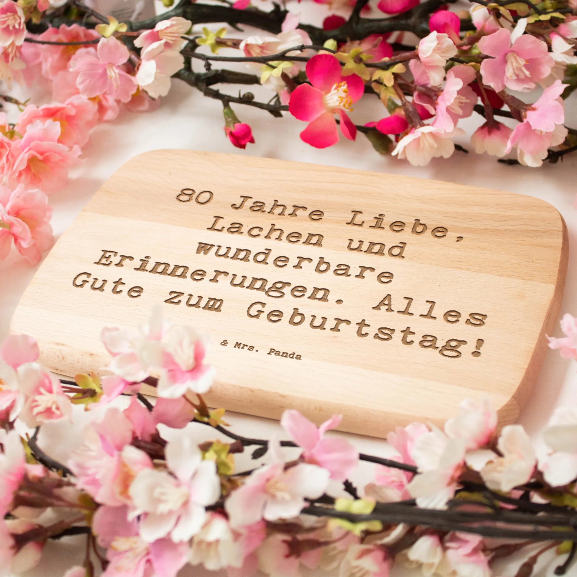 Das Frühstücksbrett "80 Jahre Liebe, Lachen und wunderbare Erinnerungen" von Mr. & Mrs. Panda ist das perfekte Geschenk für jeden, der seinen 80. Geburtstag feiert! Dieses einzigartige und edle Frühstücksbrett aus hochwertigem Birkenholz ist nicht nur praktisch, sondern auch ein echter Blickfang in jeder Küche. Mit seinen Maßen von 130 mm x 230 mm x 130 mm ist es ideal als Frühstücksbrettchen oder für die Präsentation von leckeren Snacks geeignet.