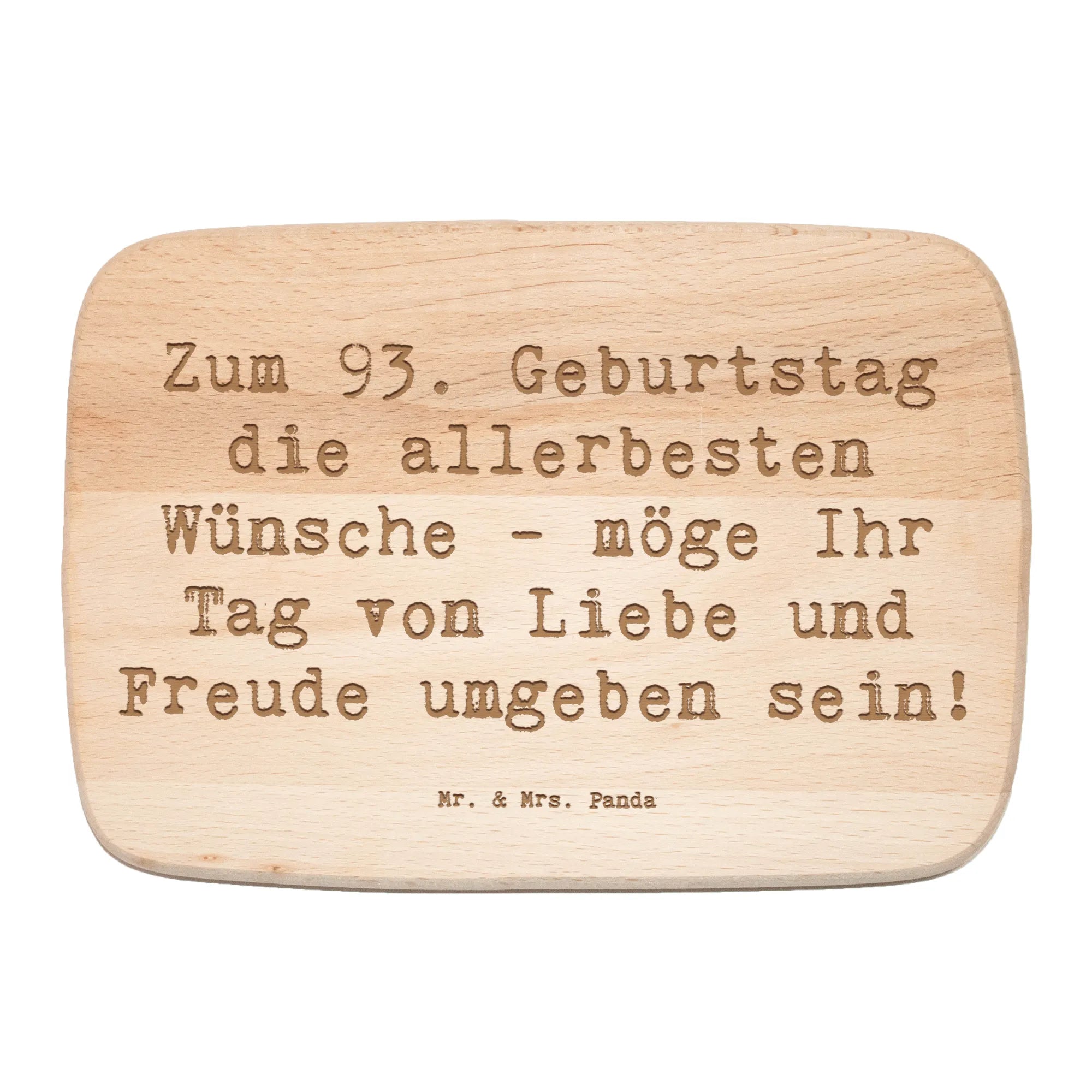Das Frühstücksbrett von Mr. & Mrs. Panda zum 93. Geburtstag ist das perfekte Geschenk für alle, die besondere Momente mit Stil und Eleganz feiern möchten. Mit einer liebevoll gestalteten Lasergravur, die den Spruch 'Zum 93. Geburtstag die allerbesten Wünsche - möge Ihr Tag von Liebe und Freude umgeben sein!' trägt, wird dieses Holzbrett zum tollen Begleiter am Frühstückstisch oder bei feierlichen Anlässen. Es ist nicht nur ein praktisches Küchenbrett, sondern auch ein charmantes Dekorationsstück, das jedem Raum eine persönliche Note verleiht.