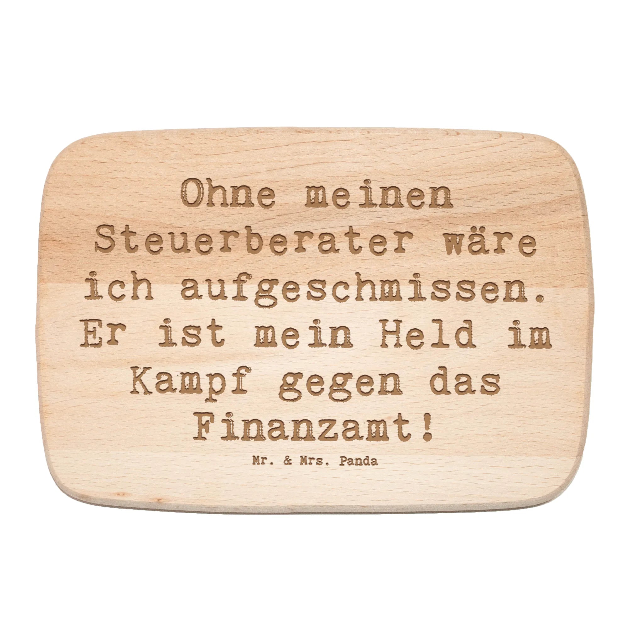 Das Frühstücksbrett "Ohne meinen Steuerberater wäre ich aufgeschmissen. Er ist mein Held im Kampf gegen das Finanzamt!" von Mr. & Mrs. Panda ist die perfekte Geschenkidee für alle, die im Finanzwesen tätig sind oder einen Steuerberater haben, der ihnen im Alltag zur Seite steht. Aus hochwertigem Birkenholz gefertigt, ist es nicht nur ein praktisches Küchenutensil, sondern auch eine originelle und liebevolle Hommage an die oft herausfordernde, aber auch wichtige Rolle eines Steuerberaters.