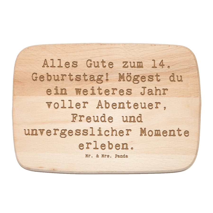 Das Frühstücksbrett von Mr. & Mrs. Panda ist der perfekte Begleiter für das erste Mal, wenn dein Kind 14 Jahre alt wird! Mit dem liebevollen Spruch "Alles Gute zum 14. Geburtstag! Mögest du ein weiteres Jahr voller Abenteuer, Freude und unvergesslicher Momente erleben." wird jeder Morgen zu einem besonderen Erlebnis. Dies ist nicht nur ein dekoratives Küchenbrett, sondern auch ein wunderbares Geschenk, das für viele schöne Frühstücke und Snacks verwendet werden kann.