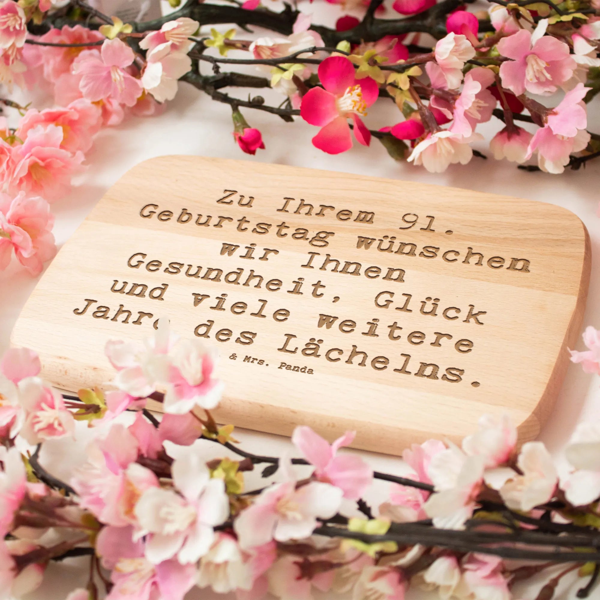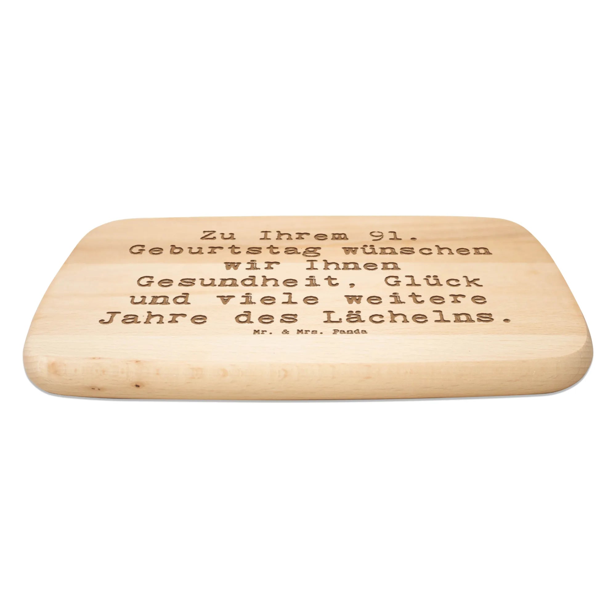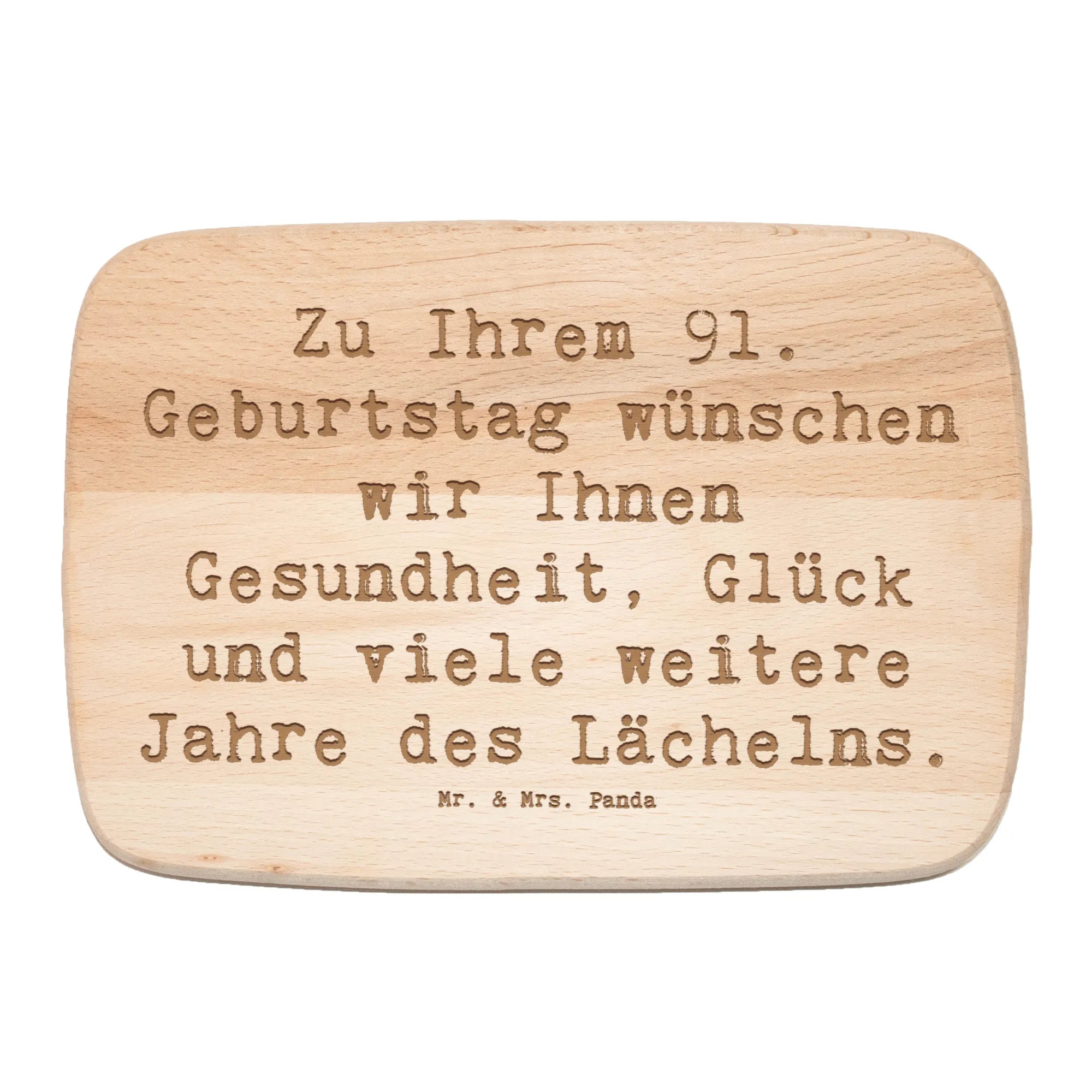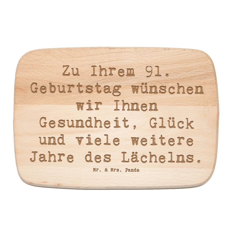 Mach den 91. Geburtstag zu etwas ganz Besonderem mit unserem einzigartigen Frühstücksbrett von Mr. & Mrs. Panda! Dieses liebevoll gestaltete Holzbrett ist mehr als nur ein praktisches Küchenutensil – es ist ein warmes Geschenk, das Deinen Lieblingsmenschen lächeln lässt. Das feine Birkenholz des Frühstücksbretts begeistert nicht nur durch seine robuste Qualität, sondern auch durch die langlebige Lasergravur. Mit dem herzlichen Spruch "Zu Ihrem 91. Geburtstag wünschen wir Ihnen Gesundheit, Glück und viele weitere Jahre des Lächelns." wird jedes Frühstück zu einem besonderen Erlebnis.