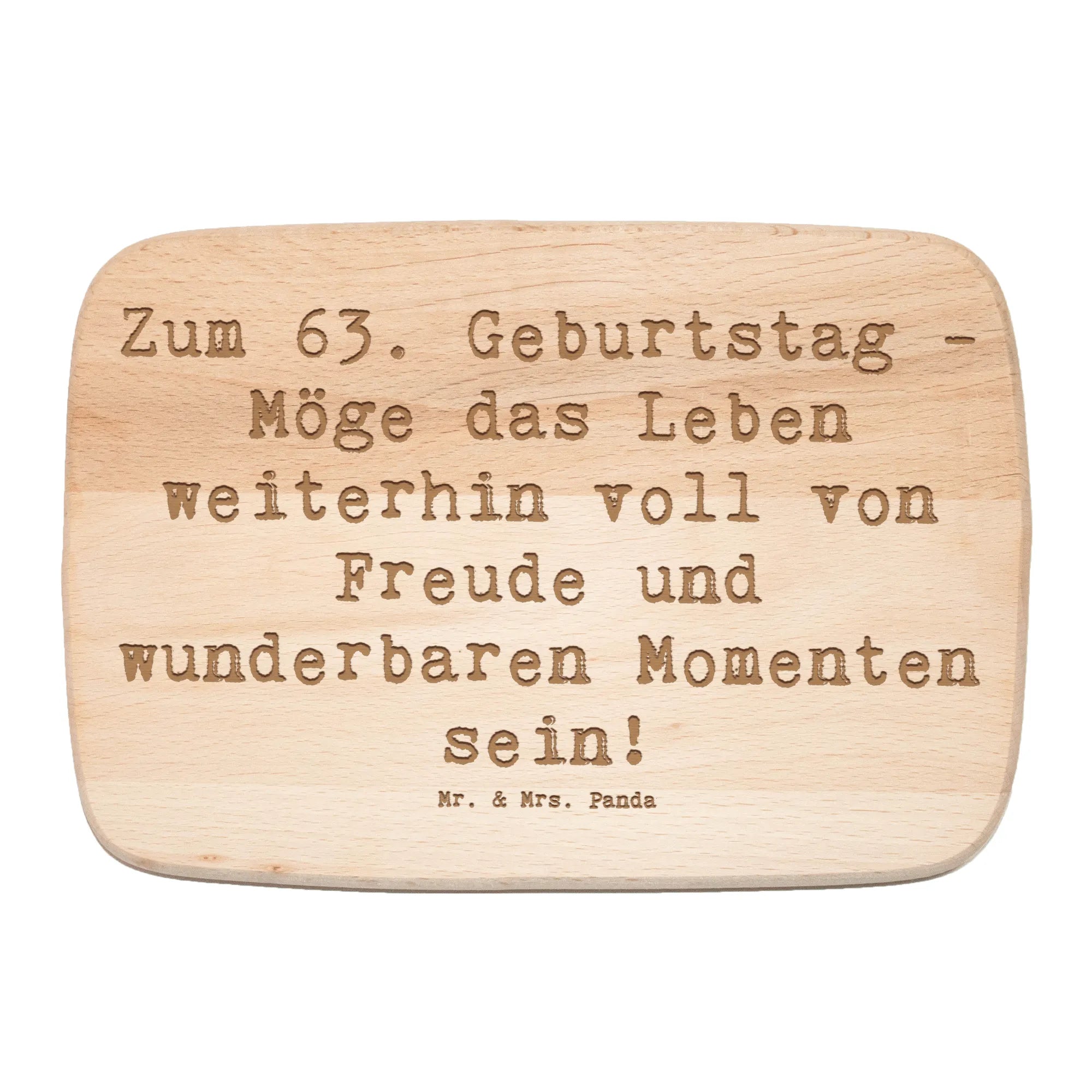 Das Frühstücksbrett zum 63. Geburtstag von Mr. & Mrs. Panda ist das perfekte Geschenk für jeden, der dieses besondere Alter feiert. Es wurde aus robustem Birkenholz gefertigt und zeigt eine liebevoll gestaltete Lasergravur mit dem Slogan: 'Zum 63. Geburtstag - Möge das Leben weiterhin voll von Freude und wunderbaren Momenten sein!'.