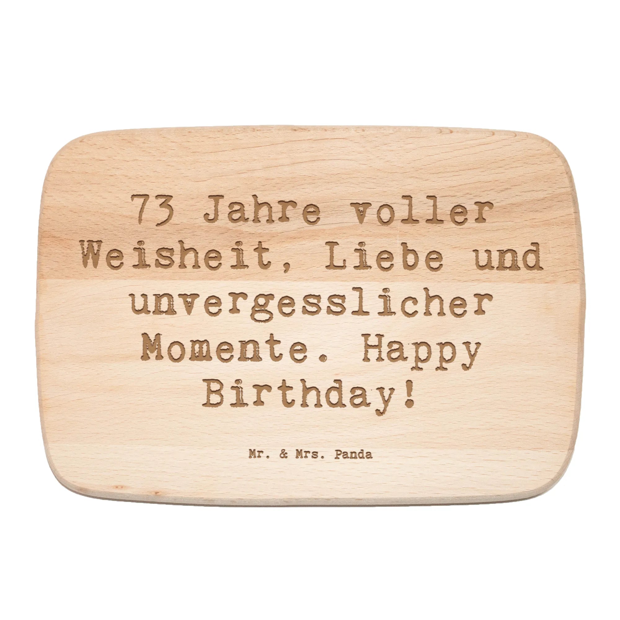 Das perfekte Geschenk für besondere Anlässe ist unser Frühstücksbrett mit dem einzigartigen Motiv "73 Jahre voller Weisheit, Liebe und unvergesslicher Momente. Happy Birthday!" von Mr. & Mrs. Panda. Dieses liebevoll gestaltete Frühstücksbrettchen ist nicht nur ein unverzichtbares Küchenaccessoire, sondern auch ein ganz besonderer Blickfang, der jede Tischdekoration aufwertet.
