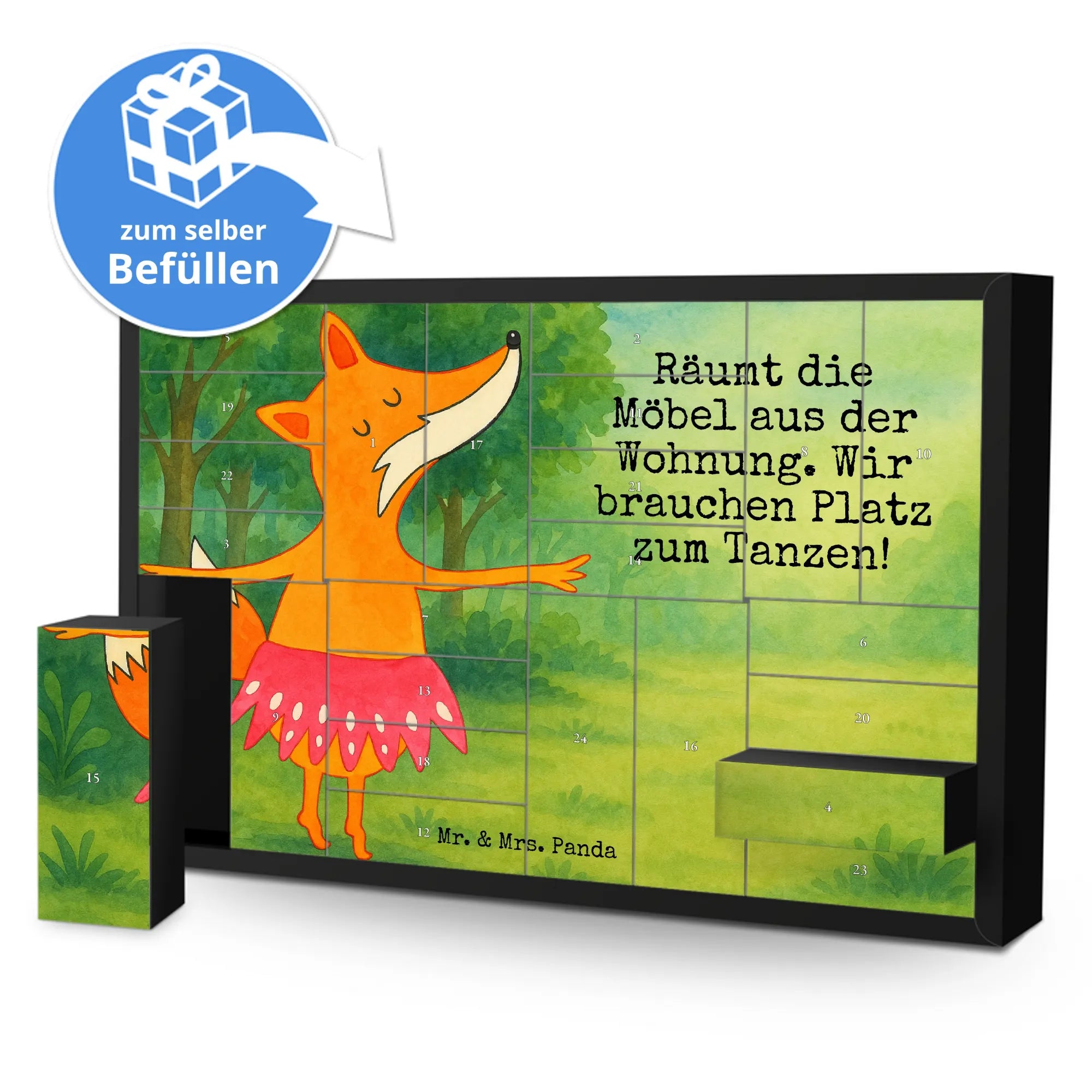 Befüllbarer Adventskalender Fuchs Ballerina Design - mit Spruch