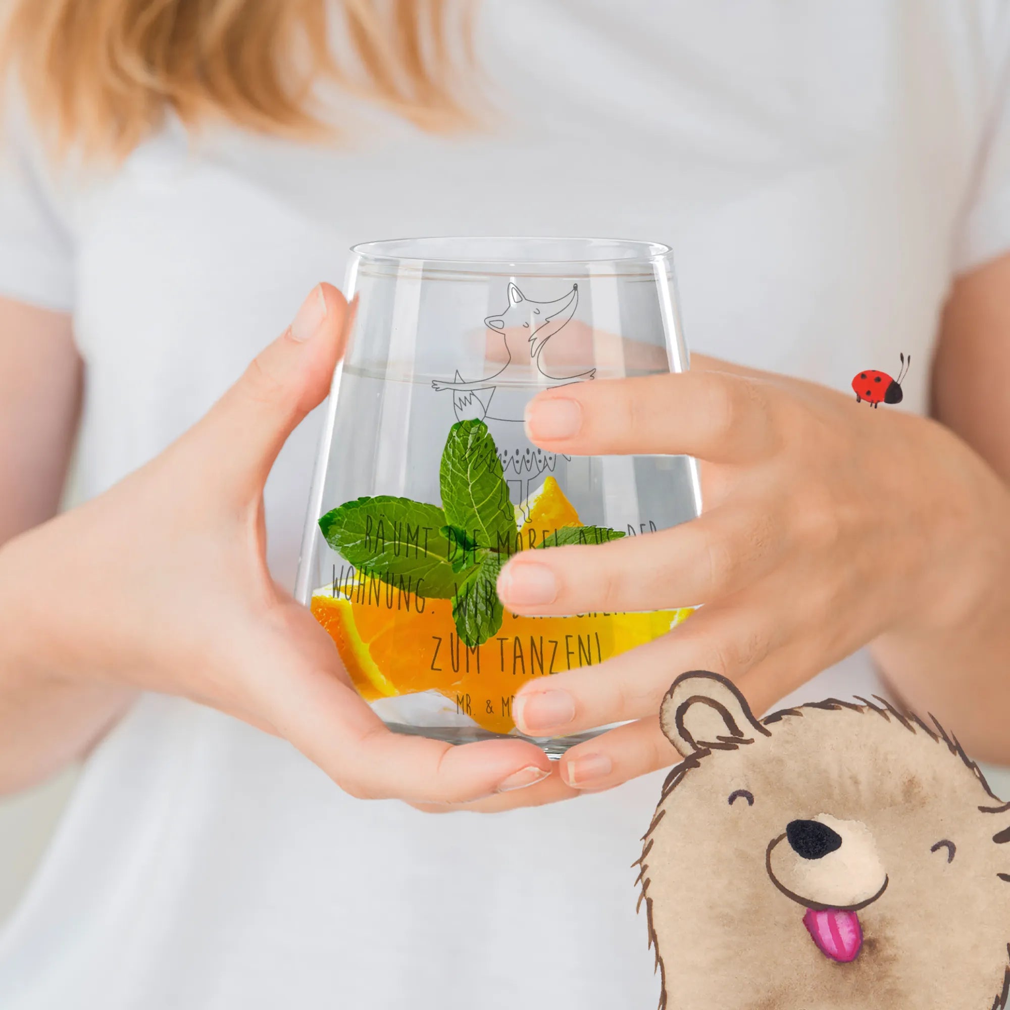 Die hochwertige Lasergravur zeigt nicht nur das süße Fuchs-Motiv, sondern verkörpert auch den Spruch: 'Räumt die Möbel aus der Wohnung. Wir brauchen Platz zum Tanzen!' und erzeugt damit sofort gute Laune. Es ist nicht nur ein Glas, sondern ein Gefühl von Leichtigkeit und Lebensfreude.