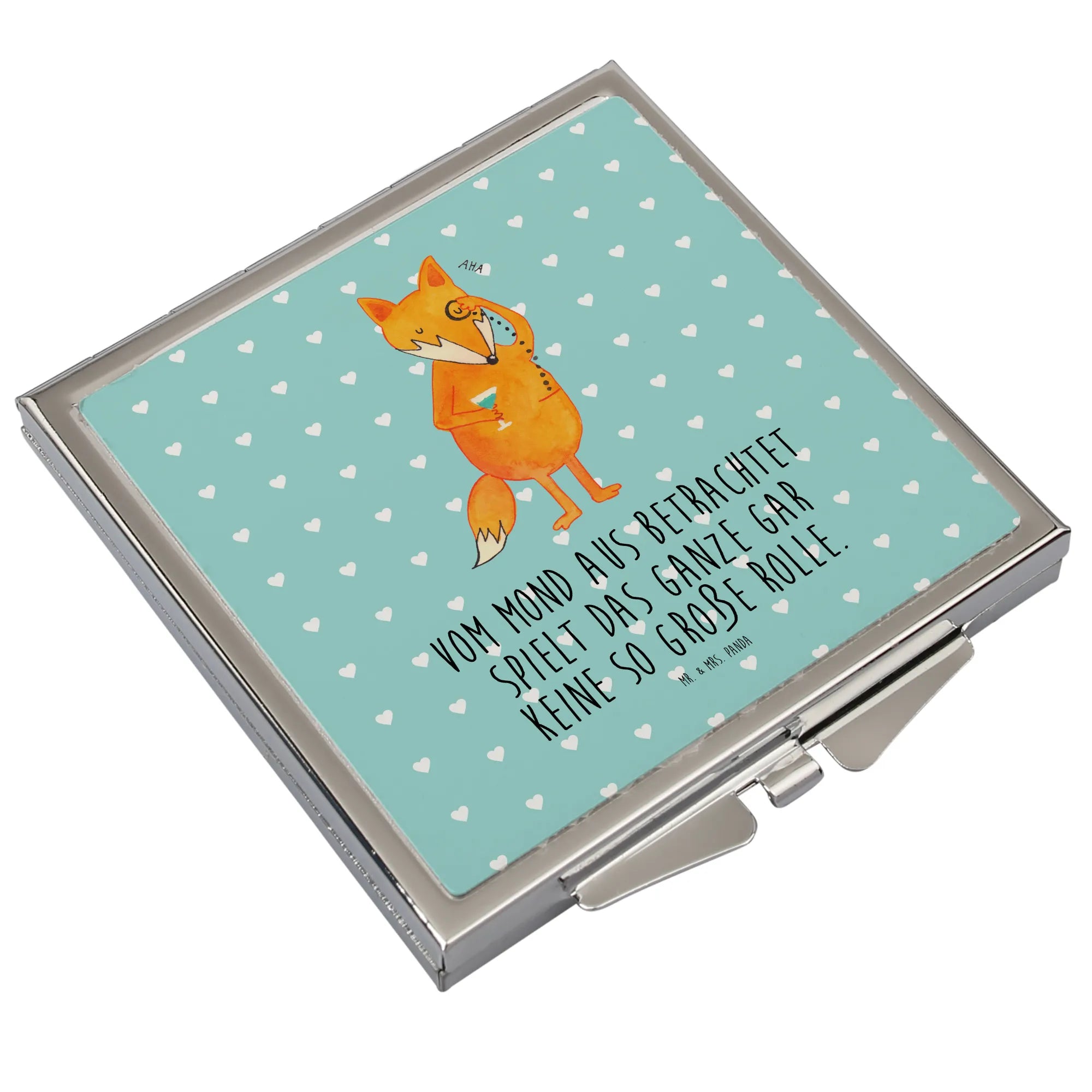 Entdecke den perfekten Begleiter für dein Makeup und deinen persönlichen Stil - den quadratischen Handtaschenspiegel "Fuchs Lord" von Mr. & Mrs. Panda! Mit einem edlen Design und einem charmanten Fuchs-Motiv ist dieser Spiegel das ideale Geschenk für Freunde, Partner oder für dich selbst. Der lustige Spruch "Vom Mond aus betrachtet spielt das Ganze gar keine so große Rolle." erinnert uns daran, das Leben nicht zu ernst zu nehmen!