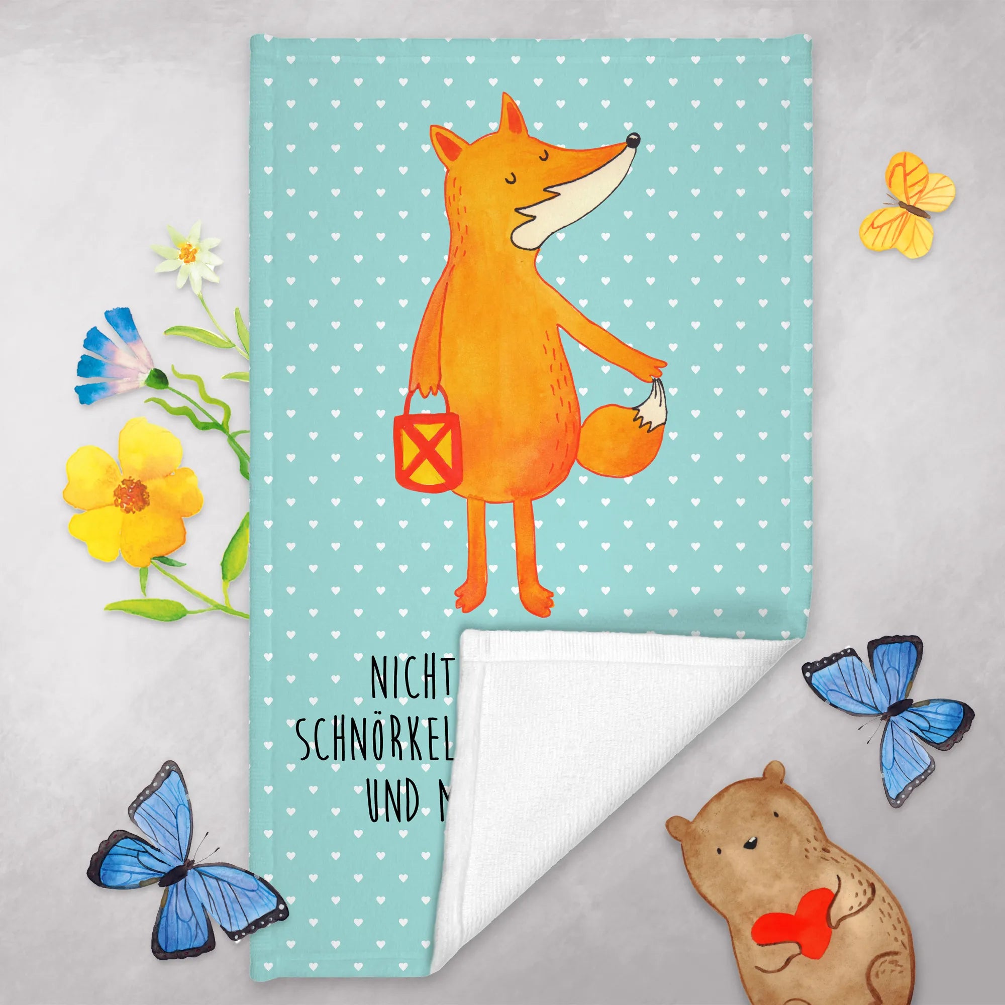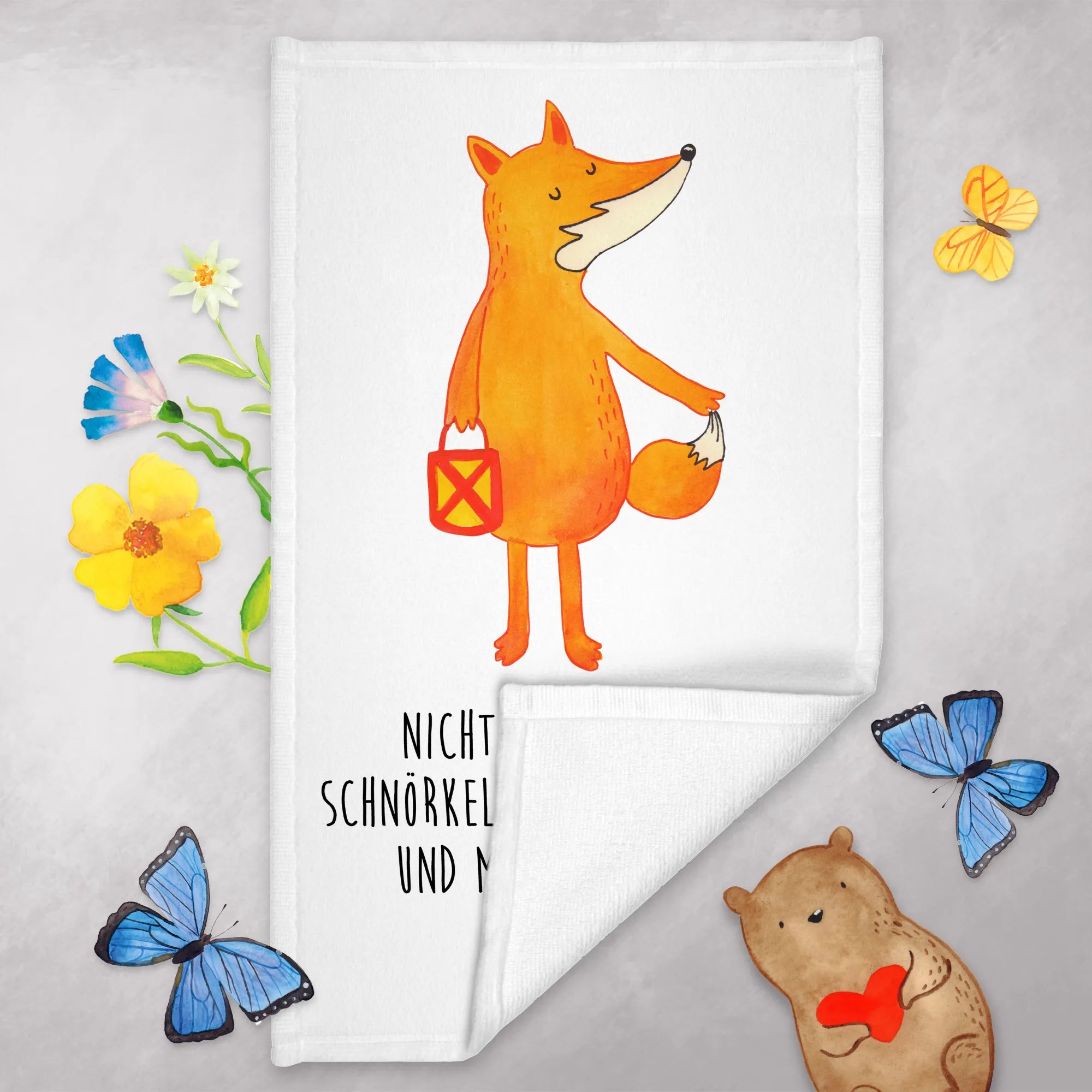 Das Gästetuch mit dem süßen Fuchs und seiner Laterne von Mr. & Mrs. Panda ist nicht nur ein praktisches, sondern auch ein liebevolles Geschenk für alle, die es gemütlich lieben. Mit den Maßen 300 mm x 500 mm ist dieses handliche Handtuch perfekt für dein Gästebad oder dein Badezimmer.